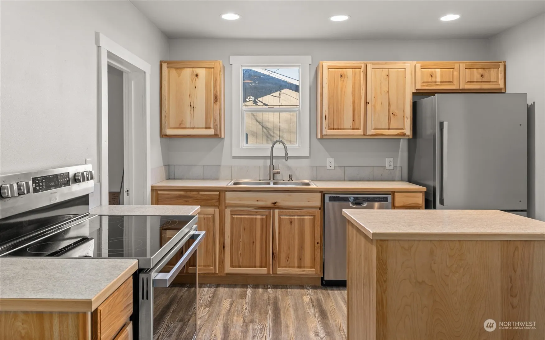 Remodeled 2 bedroom home with lots of great features including a 26 X24 shop! This cozy cottage has just been upgraded with a new kitchen that has hickory cabinets and all new stainless appliances! There is new vinyl plank flooring and new paint! The kitchen is open to the eating area that has a free standing gas stove and great room! Bedrooms have classic style built-in closets. Full bathroom has had a total refresh with a new double-sink vanity, toilet, tub & flooring! A terrific amenity is the separate mud room & laundry room with a tile floor that makes clean up a breeze plus there is extra area for storage. Another favorite feature is the on-demand hot water. Fenced back yard. Access to the shop is off the alley. Check this out today!
