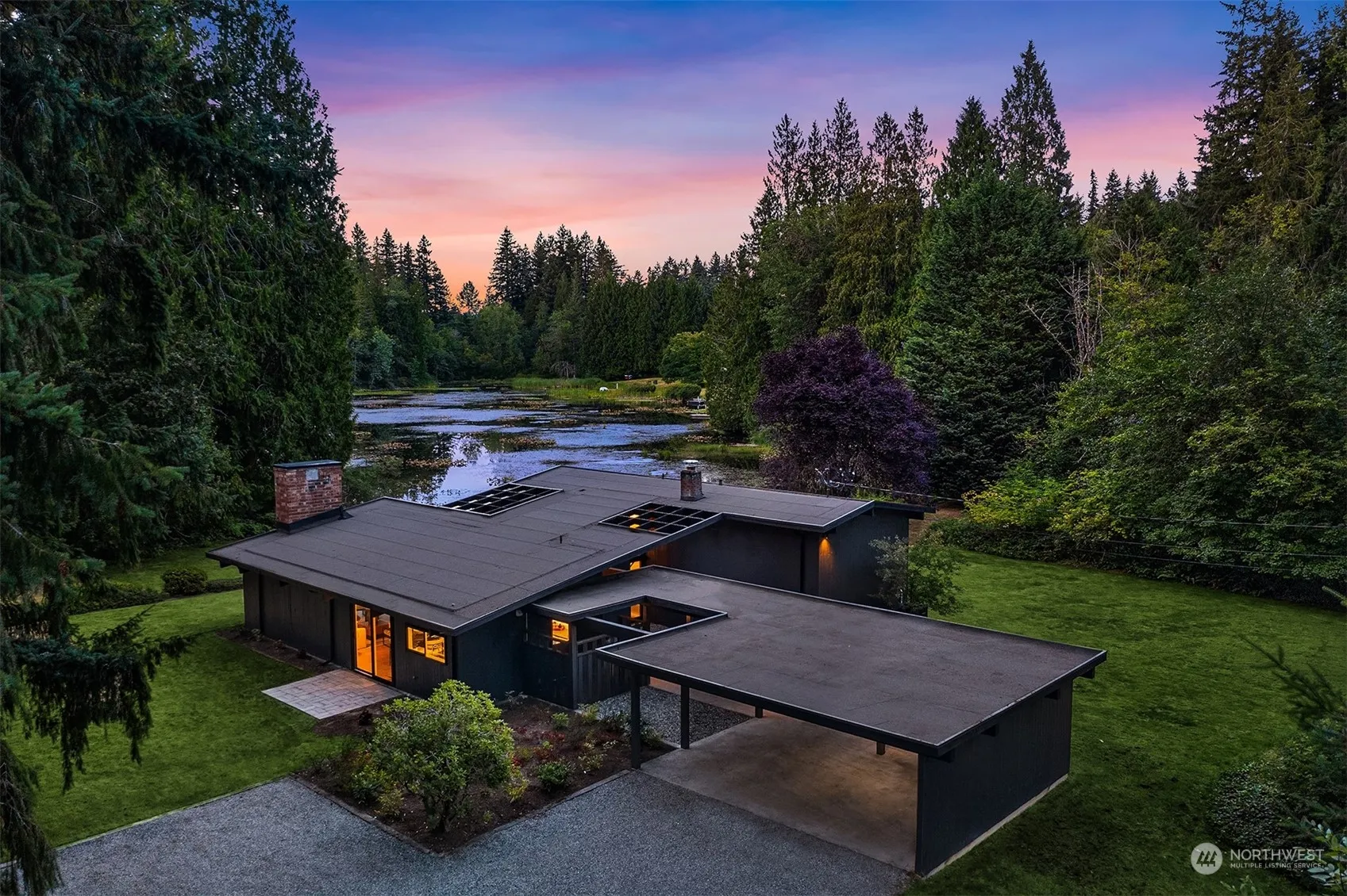 Embrace the epitome of lakeside living with this captivating mid-century modern residence nestled along the tranquil shores of Long Lake. Boasting 65 feet of private lake frontage, this home offers a rare opportunity to own a piece of history in a prime location. Immerse yourself in the nostalgia of mid-century design with original cedar ceilings, and experience the perfect marriage of vintage charm and contemporary luxury with new interior finishes. With nearly 2 acres, there’s ample space for additional structures, outdoor entertainment spaces, or cultivating your own garden oasis. Close proximity to Downtown Redmond and Downtown Issaquah, residents enjoy easy access to a wealth of amenities, including shopping, dining, and entertainment.