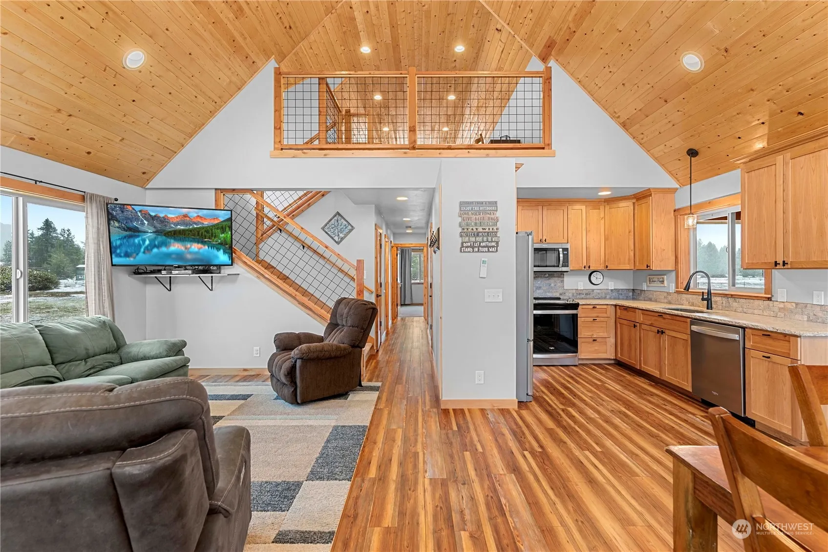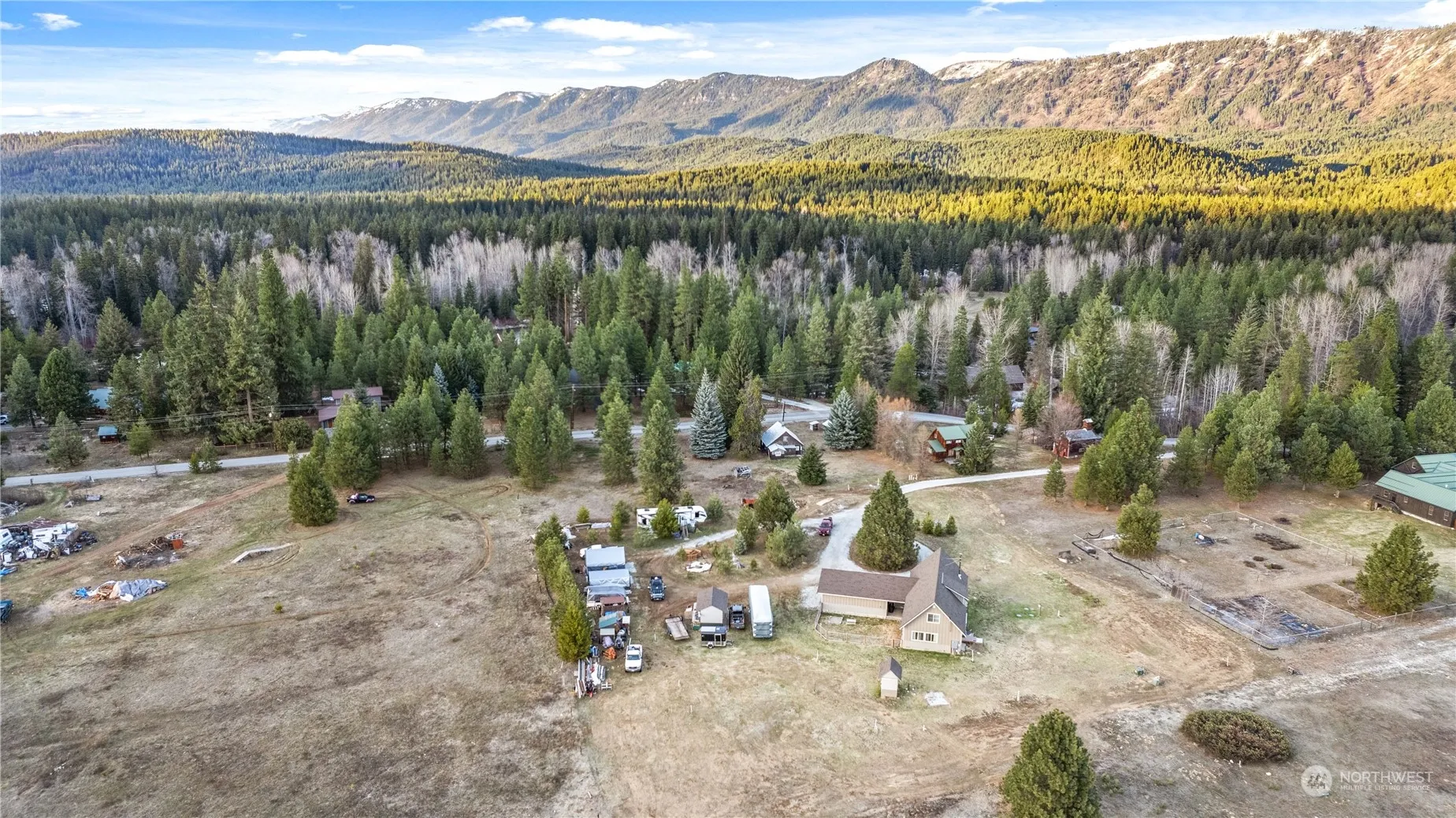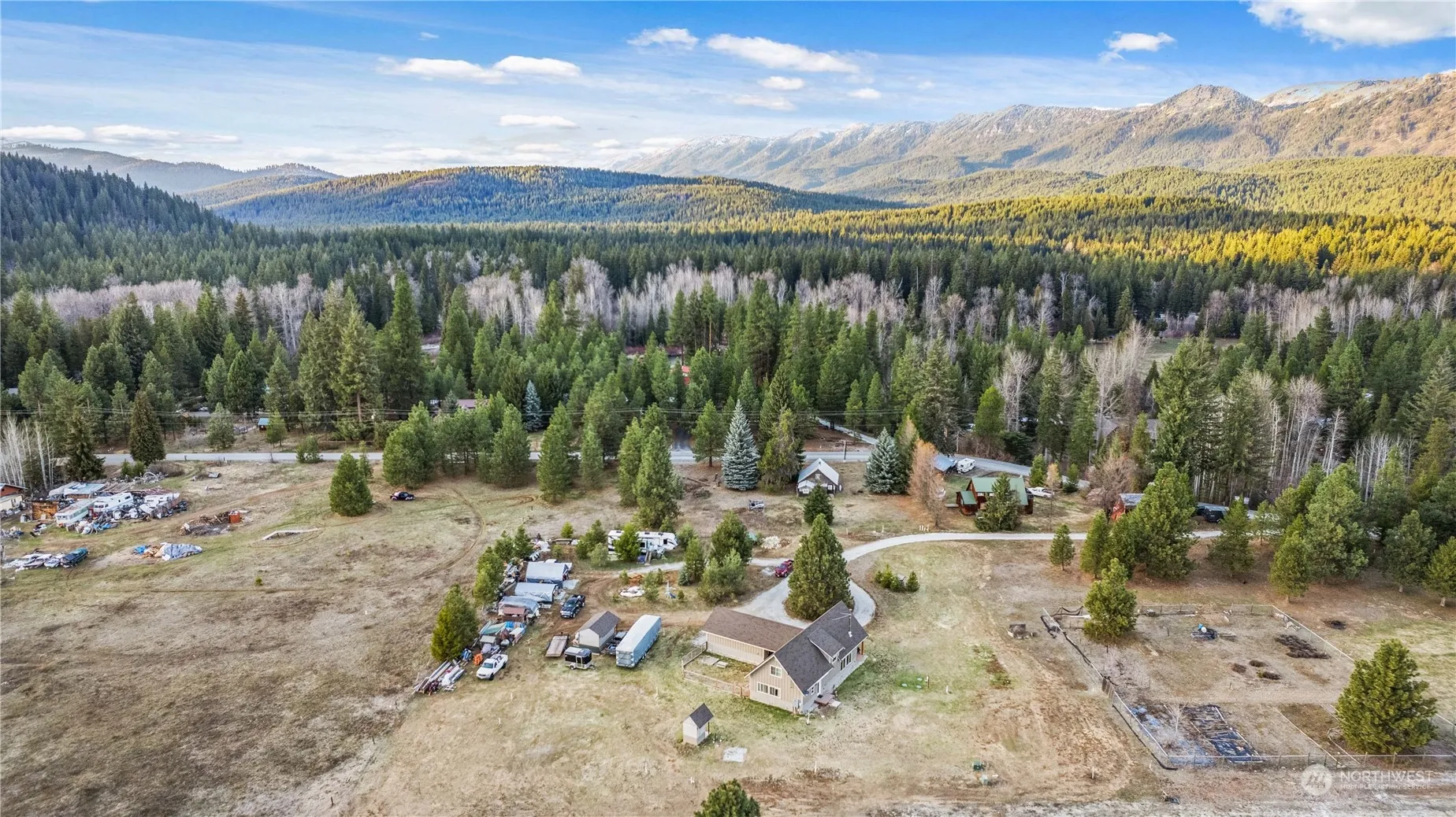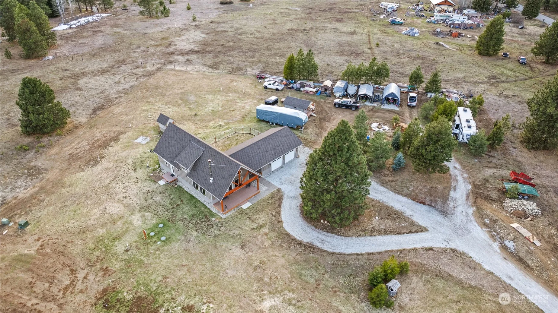 Secluded mountain retreat nestled in the serene Cascade mountains. This charming 2 bedroom, 2 bathroom cabin with an expansive loft space offers tranquility and natural beauty. Escape the hustle and bustle of city life and immerse yourself in the peaceful surroundings. Features include: granite counter tops, LVP throughout, mini split units for individual temperature control, vaulted ceilings, living room fireplace, detached 2 car garage, RV parking with 250 amp plug-in, and generator-ready outlets. Just under 2 acres of fully irrigated land ready for your enjoyment. Sip your morning coffee on the front porch while the sun paints the peaks!