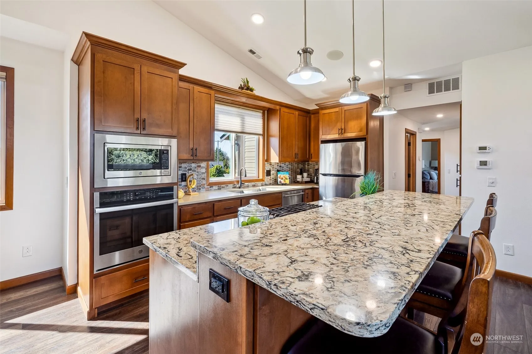 Newer residence offering beautiful, upgraded living in desirable Edgewood. Discover a luminous interior w/ high airy ceilings & stunning open balustrade. Enjoy the comforts of radiant heat flring, air conditioning, & luxury vinyl flring throughout. The seamless flow between the kitchen, dining, and family rm creates an inviting space for both everyday living & entertaining. The chef’s kitchen features a large breakfast bar island, sleek stainless appliances, decorative tile backsplash, & rich custom cabinetry. The tranquil primary bdrm on the main flr comes complete with a walk-in wardrobe & private en-suite with luxurious oversized shower. The covered outdoor living area is perfect for year-round enjoyment of alfresco dining or relaxation.
