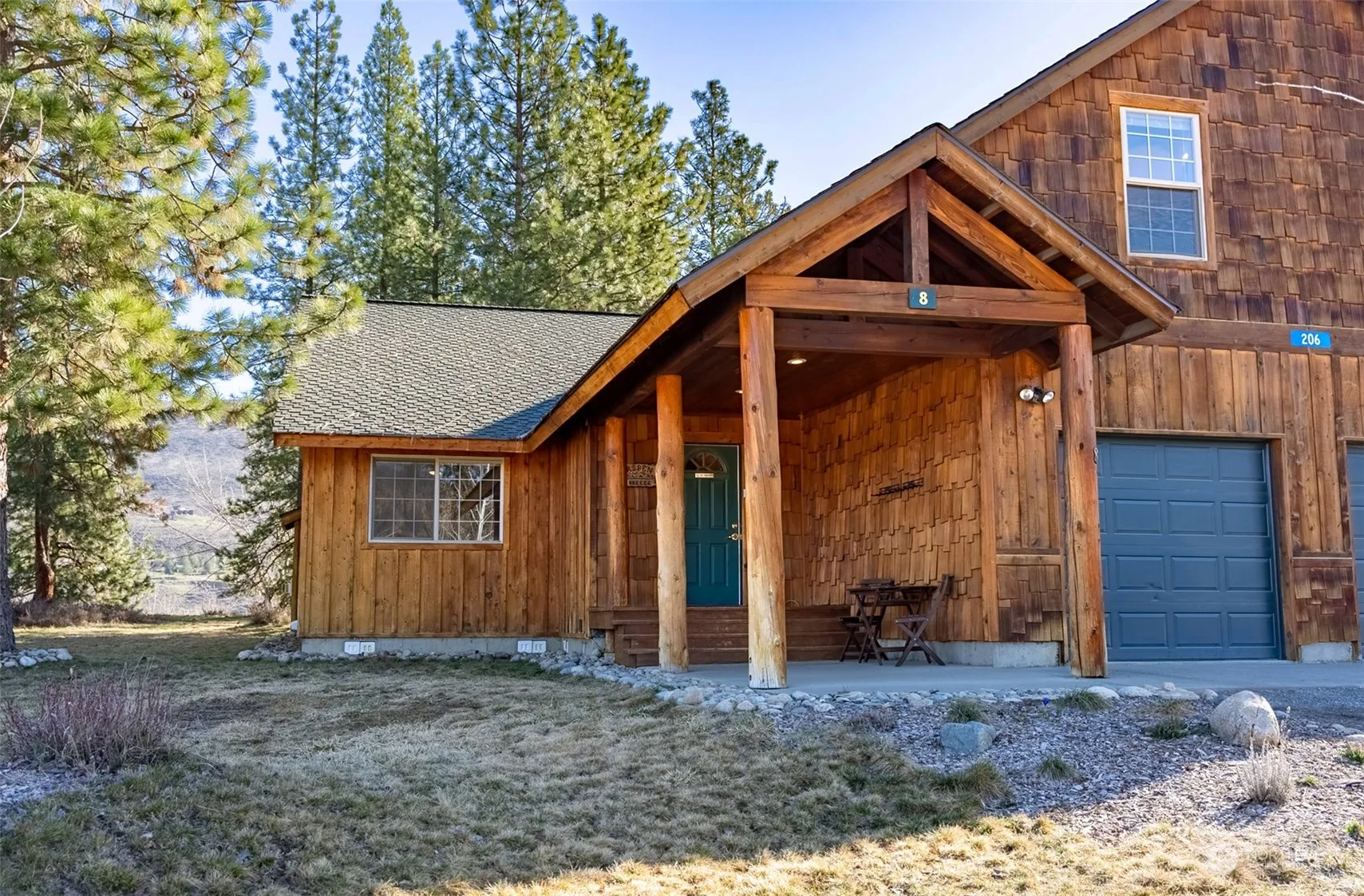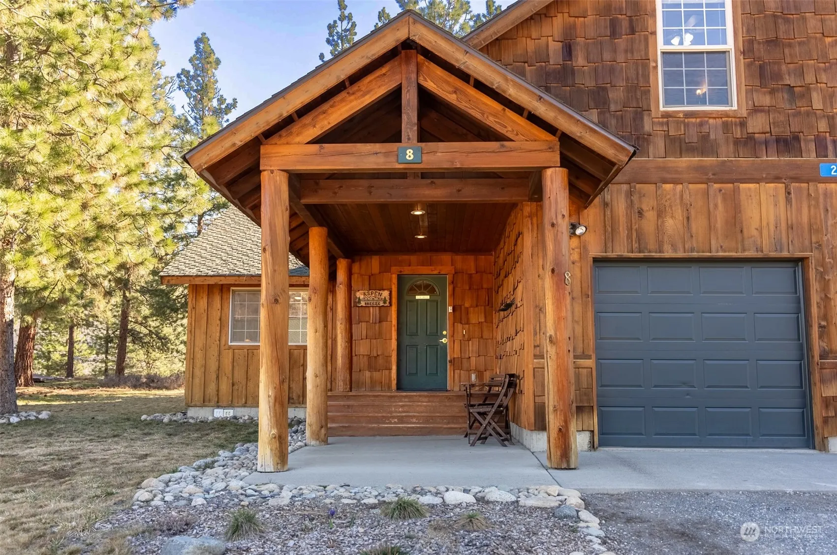 Desirable Location in Winthrop! Contemporary condo nestled into the forested bluff just south of Winthrop. 3bd/2bth 1517sqft with lots of natural light and open floor plan. Vaulted ceilings in living room with a stone hearth & propane fireplace for immediate ambiance & warmth. Sliding glass doors lead to the back porch and face out over the backyard, perfect for morning coffee or place to read and relax. Two bdrms (including spacious primary with large on suite bath & walk-in closet) on the main. Upstairs room could be bunkroom, guest room or office. Walking distance to Nordic ski trails that stretch to Mazama. Close to all Winthrop amenities: cinema, bakery, bookstore and more. Become part of this special community! Legal nightly rental.