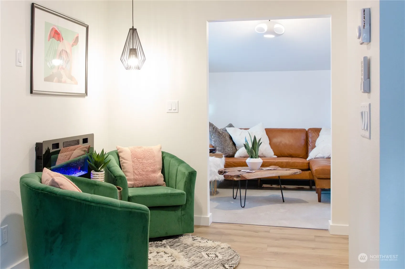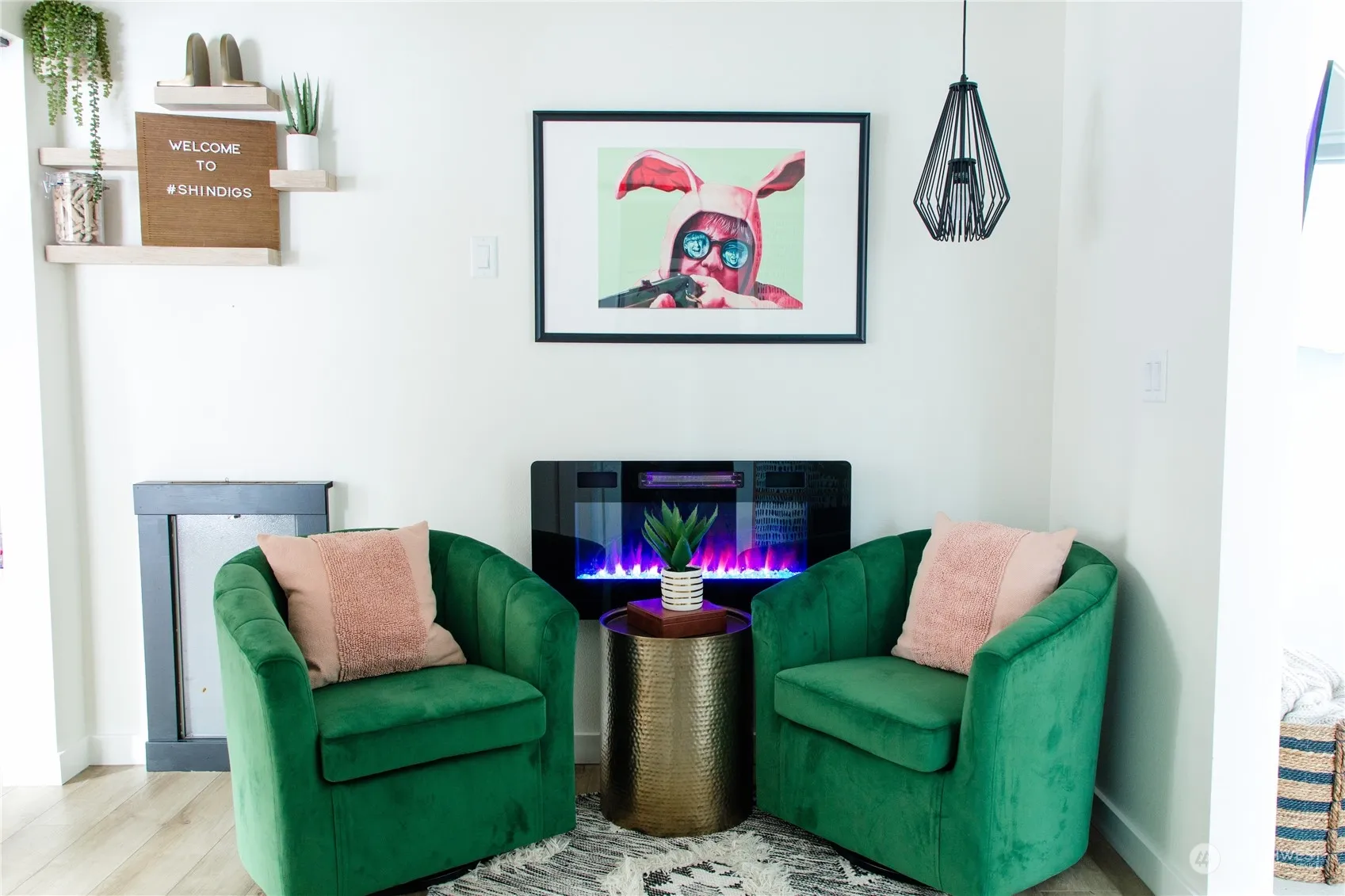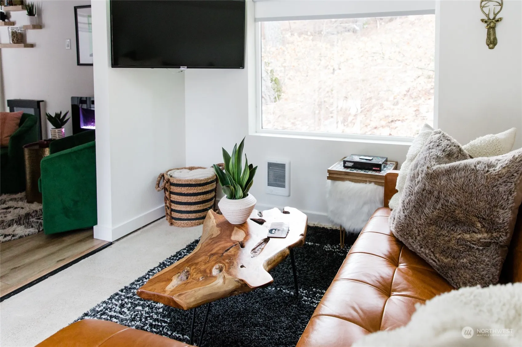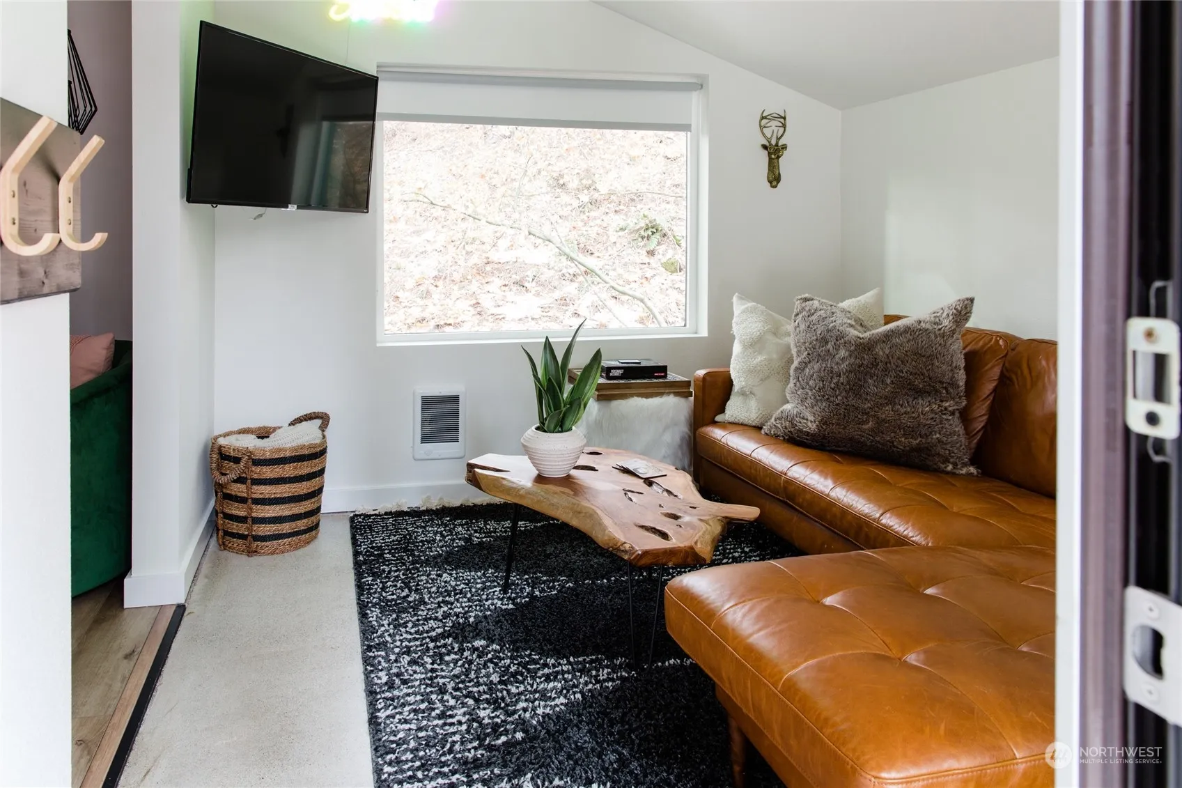 Fantastic opportunity in Sun Country! Completely remodeled in 2021. Operated as a successful short term rental. Generous patio with hot tub and privacy screen w roll up garage door for indoor/outdoor living. French door entry & large windows offer natural light. Cozy family room with trendy concrete floors. Electric fireplace with sitting nook, engineered hardwoods, Bellmont kitchen cabinets & funky touches throughout. Bathroom with eclectic pop art tiles. Loft sleeping area, and cozy lounging net open to below. 2 bedroom septic. Plenty of room to build another home on the property. Comes fully furnished… Hurry!