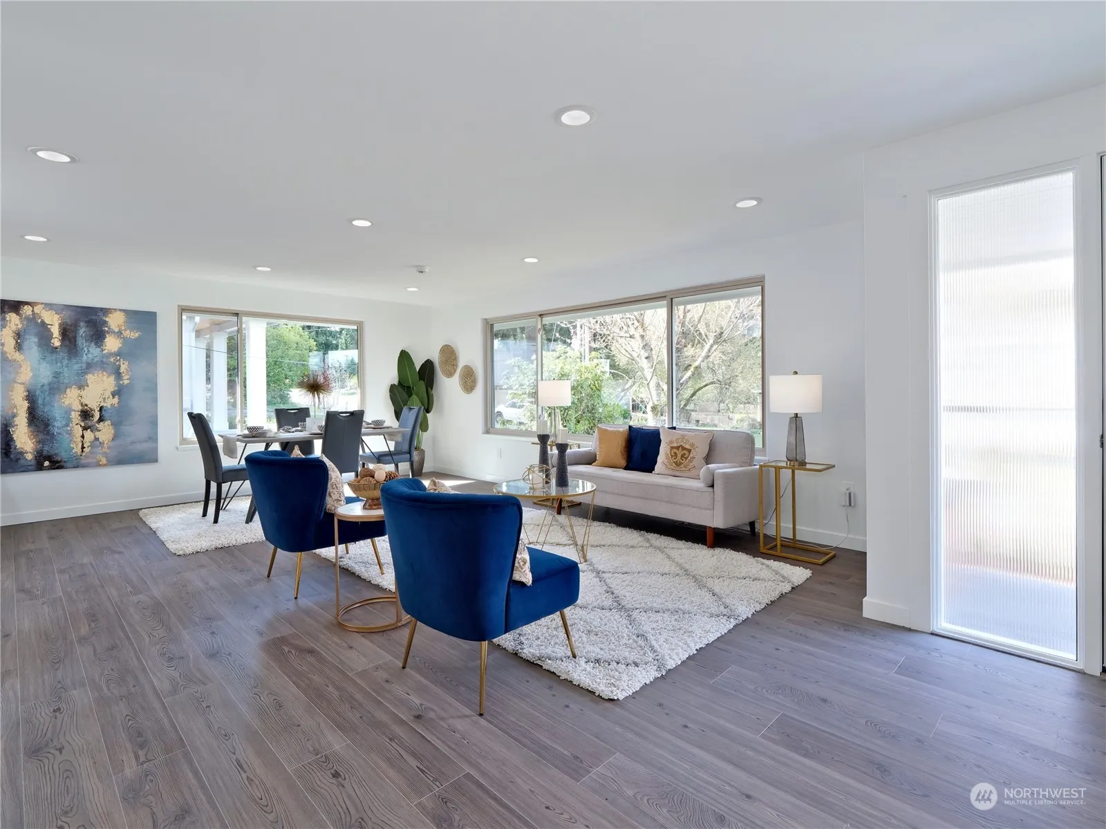 Thoughtfully permitted remodeled home with custom finishes. Open concept main floor with waterfall island overlooking living area. Beautifully updated kitchen with Cafe appliances, shaker cabinets, quartz counters, and tiled backsplash. Primary bedroom with walk-in-closet ready for custom closet and oversized shower. Brand new LVP flooring throughout home. Custom wainscoting. Fresh coat of interior/exterior paint. Private backyard with patio overlooking spacious yard with bamboo, fruit trees, and gardening space. Shed in backyard. RV parking. Mud room off garage. EV charger in garage. Central A/C. Walking distance to elementary and high school, library, boys & girls club. Easy access to DT Mercer Island and freeways.