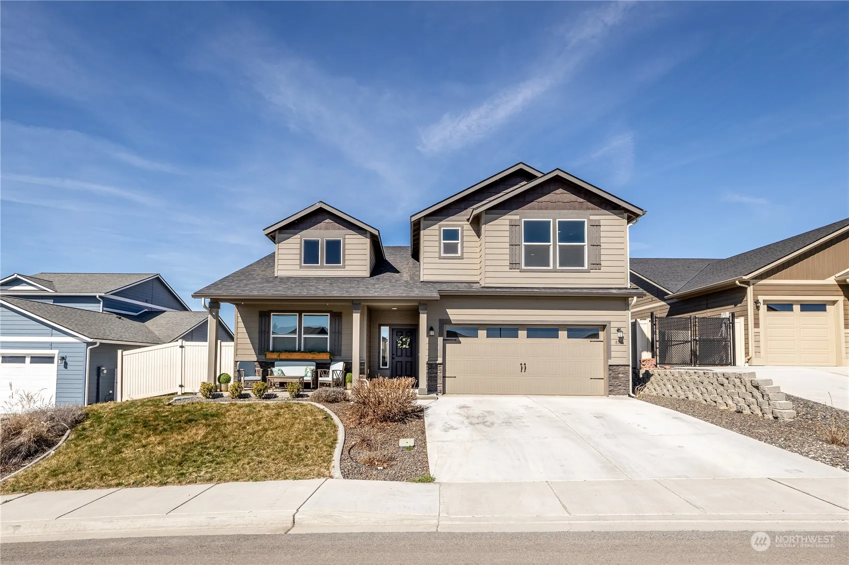 *Special Financing Available* This home has everything you have been looking for! Great East Wenatchee Location! All bedrooms on the main level with high ceilings throughout. Great Room and kitchen stand out with vaulted ceilings that really showcase the natural light and make the space feel large and roomy. Primary bedroom has a ton of light and a door to back patio. Dual sink vanity in primary bath with soaking tub and a closet that has room for all your shoes – I mean clothes! Covered patio in the back yard for summertime BBQ’s with views of Saddlerock. Easy access guest bedroom and bathroom off the main hallway. Large bonus area upstairs for crafts, game room, office, or multi use! 2 car garage with room for additional storage.