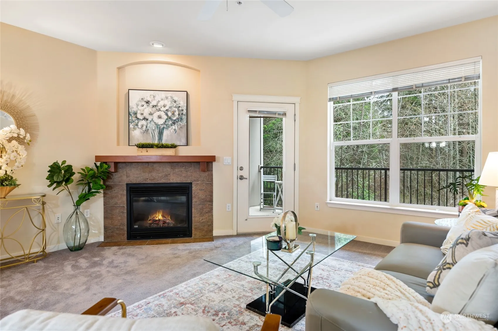 Discover this stunning end unit with high ceilings, attached garage, and private deck—a no-stairs haven. Enjoy 2 spacious bedrooms and 1.75 baths. Cozy up by the gas fire in the bright great room. Open kitchen with slab granite counters, stainless steel appliances, and ample space for entertaining. Luxurious master bedroom with gas fireplace, spa-inspired bath, and walk-in closet. Generous second bedroom with walk-in closet. Full-size washer & dryer included. Secure gated entry, guest parking, and nearby trails. Shopping, restaurants, theatres, Issaquah Schools, Issaquah Highlands Park & Ride & I-90 minutes away. Rental cap not met. Inspection report ready to share.