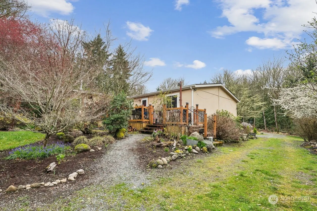 Come enjoy your peaceful and private triple-wide Manufactured home, 1880 sq ft on 3.38 acres. New furnace and New Trane Heat pump, Newer windows, and New roof with Leafguard gutters. An inviting front deck leads into a cozy living room with a wood fireplace for cold winter nights. The kitchen offers ample cabinet space, an island for food prep, and an adjoining dining space for gatherings. The primary bedroom has an extra large walk-in closet and bathroom, while the two additional bedrooms have a shared bathroom. Head out to your spacious deck and view the mature fruit trees, gardens and 12×12 gazebo. Walk along the walking path to your 4 out-buildings with plenty of storage. Great local schools, Weyerhaeuser elementary 2.3 miles away.