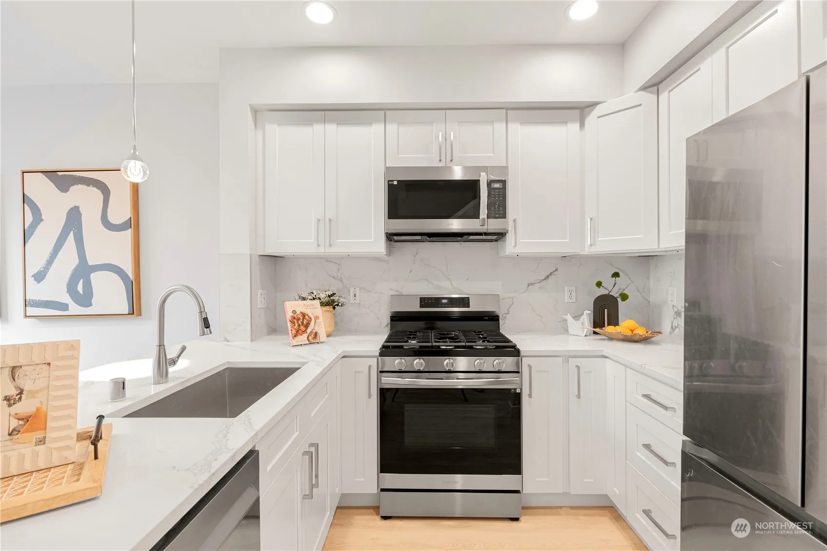 Step into elegance with this newly renovated cozy 2-bedroom, 2.25-bath home boasting a brand-new kitchen, modern appliances, and a new water tank providing radiant heat throughout. With an open floor plan, luxurious master suite with a full bath, a sun-filled guest suite with an ensuite bath with a shower, and a private patio, this home offers both comfort and elegance. It also features a spacious two-car garage with storage space. Enjoy stunning glimpses of Lake Sammamish and a breathtaking sight of Mt. Rainier. With top ranked schools and conveniently located close to the lake, trails, shopping, restaurants, and with easy access to I-90. Don’t miss this opportunity to experience the epitome of modern living!