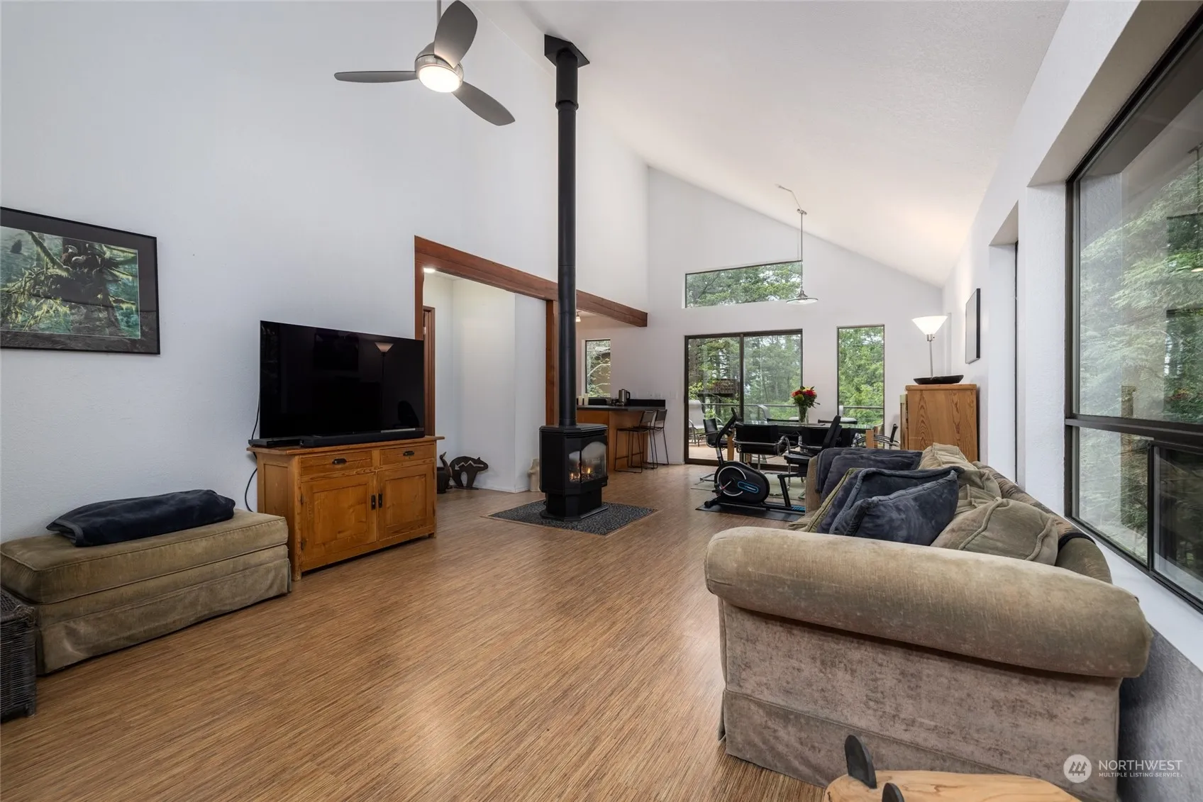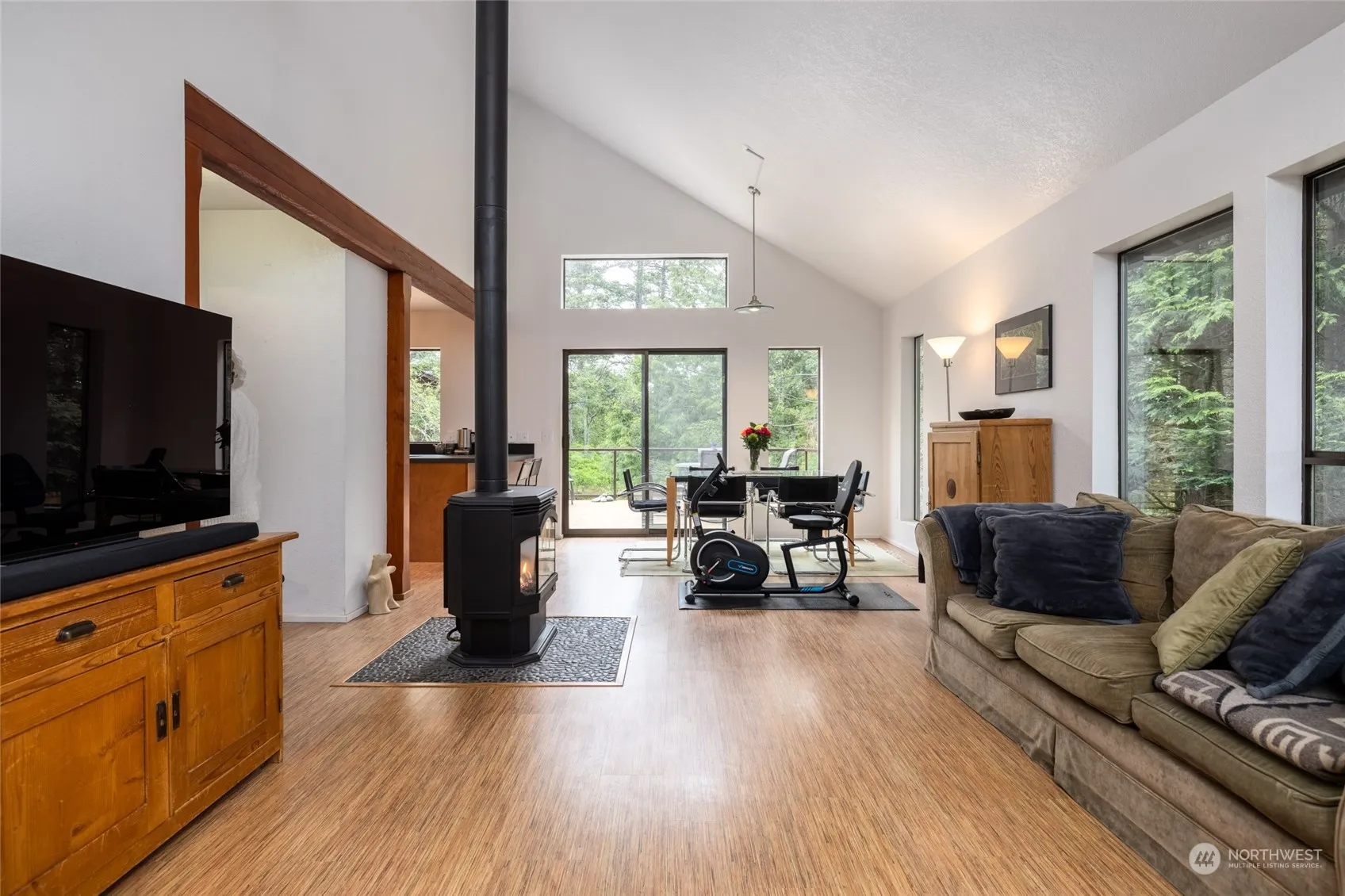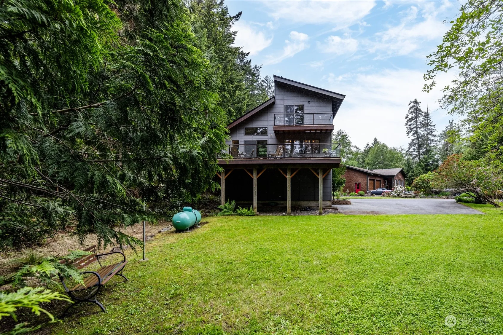 If you’ve ever dreamed of living in a treehouse, here is the next best thing! A soaring, 16-foot ceiling opens up the great room of this Northwest contemporary-style home nestled in Shelter Bay. Stand-alone propane stove for warmth and ambience, seagrass laminate plank floors, and a custom-designed kitchen with light cherry-finished maple cabinets, amazing pantry storage, and more. Brand-new, 50-year roof and freshly-painted exterior. Two levels of decks for entertaining or birdwatching among the trees. A light-filled loft outside the upstairs primary bedroom would make a great exercise/artist studio or office. Enjoy privacy and seclusion along with easy access to all the amenities Shelter Bay has to offer!