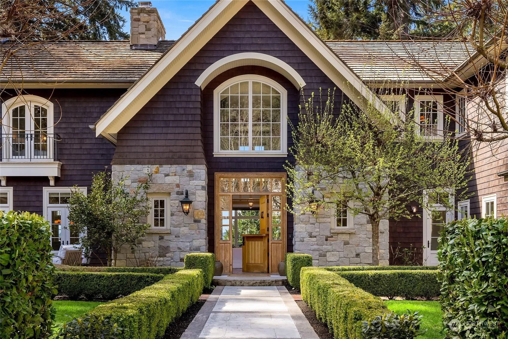 Meander down this private drive lined with stunning maple trees to an extraordinary French Country estate designed by Robert Maloney, Architect. The home is perfectly sited on 3.86 acres with beautiful west-facing views of Puget Sound and the Olympic Mountains. Natural light and the feel of a gracious East Coast coastal estate. French doors open to multiple entertaining patios to enjoy the indoor/outdoor lifestyle we love. Epicurean eat-in kitchen w/marble counters and a Lacanche 72-inch range. Wide-planked hardwoods, wrought-iron chandeliers and 6 fireplaces throughout. The magnificent primary suite w/fabulous views, private office and spa like bath. A 4-car garage and 2-bedroom guest house w/full bath. A perfect Island waterfront retreat!
