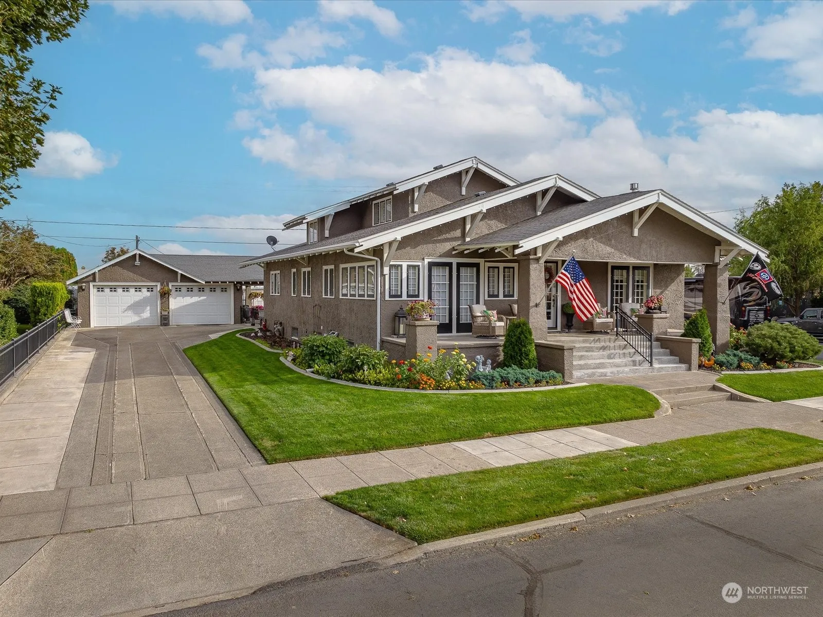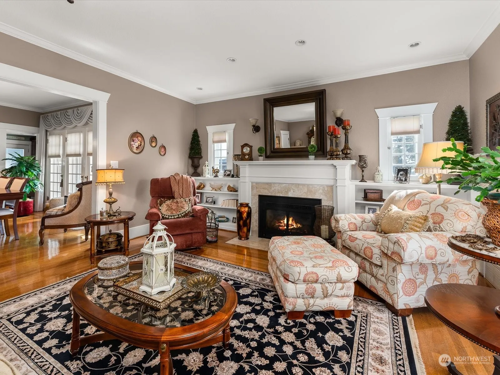 Welcome to this charming and meticulously maintained registered historical home, nestled within mature landscaping. Boasting a covered patio, backyard oasis, and a welcoming front porch, this property offers the perfect blend of indoor and outdoor living. Step inside to discover a formal living area featuring a cozy fireplace, ideal for gatherings or quiet evenings. The adjacent formal dining area sets the stage for elegant meals and entertaining. The spacious primary bedroom is a retreat unto itself, complete with a recently updated three-quarter primary bath featuring a full tile shower. Crown molding throughout the house adds a touch of sophistication to every room. Convenience is key with a two-car garage and a walk-out basement.