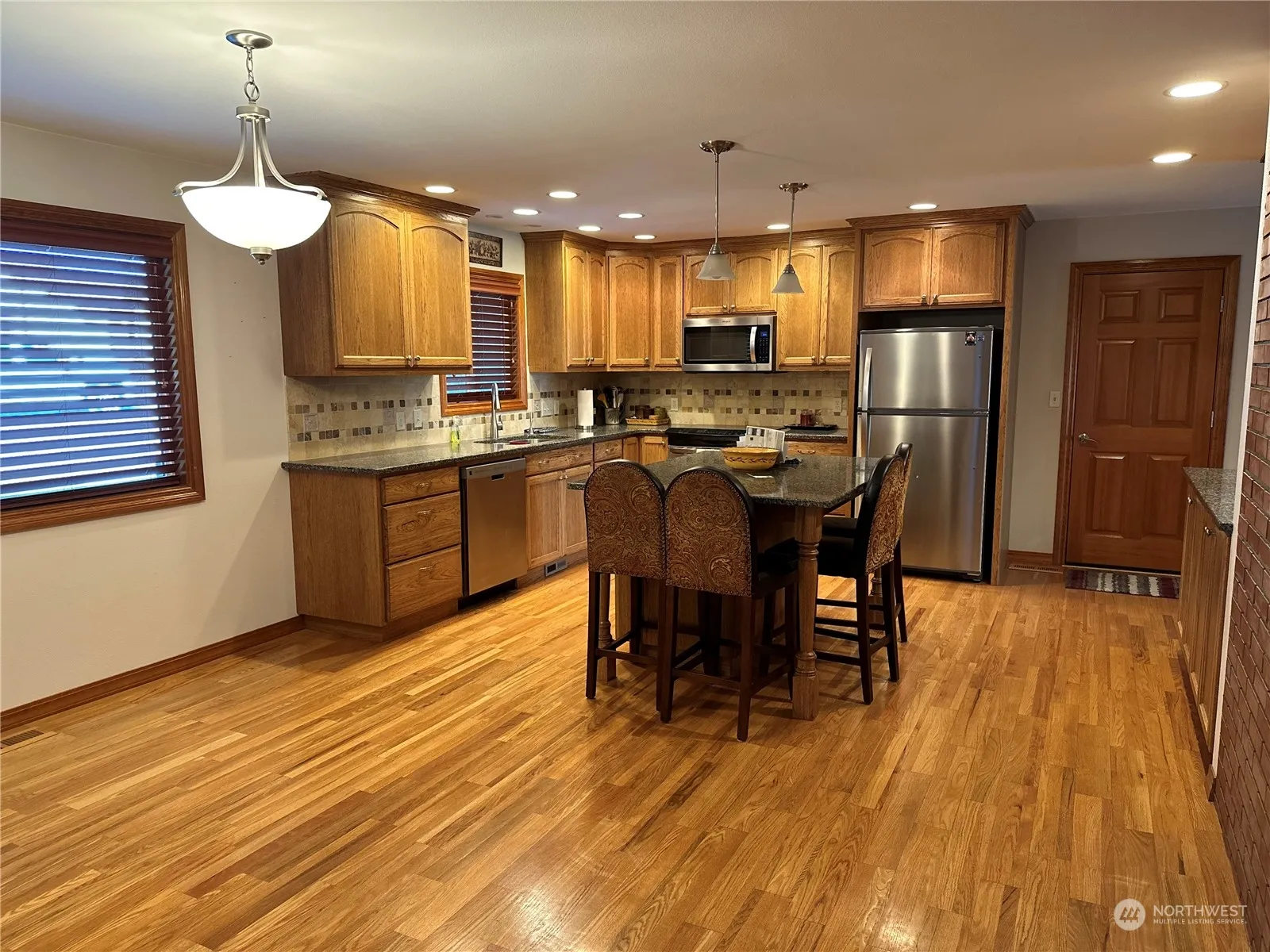 BEAUTIFULLY UPDATED & IDEAL LOCATION… Just minutes from town this 2574 sq. ft. 3 bedroom, 2.5 bath, home is located on 1.08 mature & nicely maintained acres. Home design includes vaulted ceiling, spacious family & living rooms, wood fireplaces w/heatilator, quality updates & finishes throughout, solid wood doors, wood floors, granite counters, updated tiled bathrooms, custom blinds & drapes. Kitchen includes island, stainless appliances & slide out cabinet shelves. French doors lead to large deck, sports court, garden shed & 36’x 48’ shop w/bat & board siding, metal roof, oversize RV door, lofted storage, auto door openers & separate PSE electric.