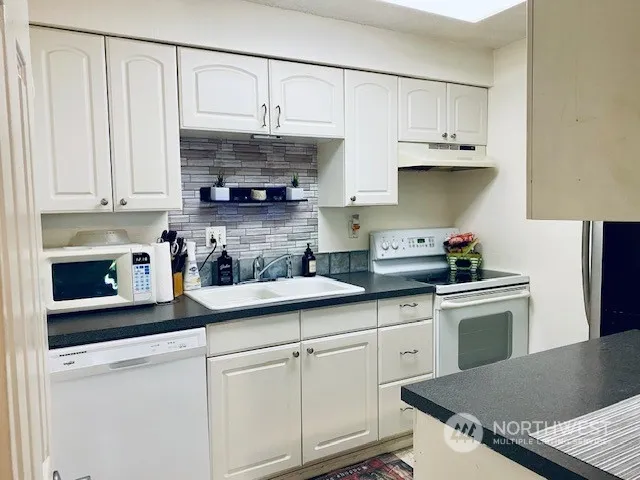 Top floor Corner-End unit. 2 Primary Bedrooms + 1 Additional Bedroom added. Town-home in city close to everything. See-through kitchen/dinning, 2 Primary bedrooms upstairs w/ individual sinks, Jack-n-Jill bath. Upgrades include new plumbing and appliances, new heating thermostats & cooling fans. Final renovations to be completed in July. Turn-key business ready. 1/2 bath on the main floor (Currently 3rd bedroom) Kitchen & separate dinning room. Courtyard setting with sculpted landscaping views from each window, Territorial views from balcony. Complex has 3 Pools, a Gym, 2 Saunas, Sports Court, Extra Storage, Cabana. Easy access to Seatac Airport I-5/405/99 & Light-Rail Station.