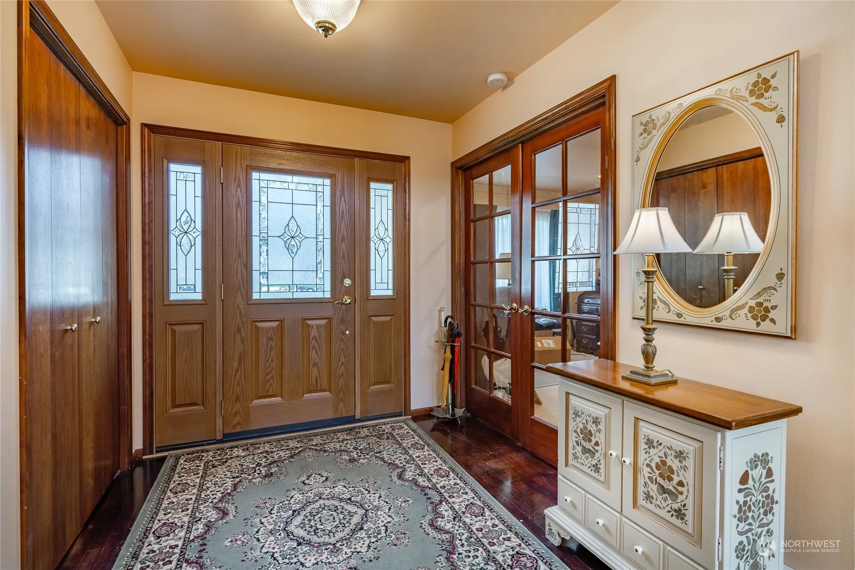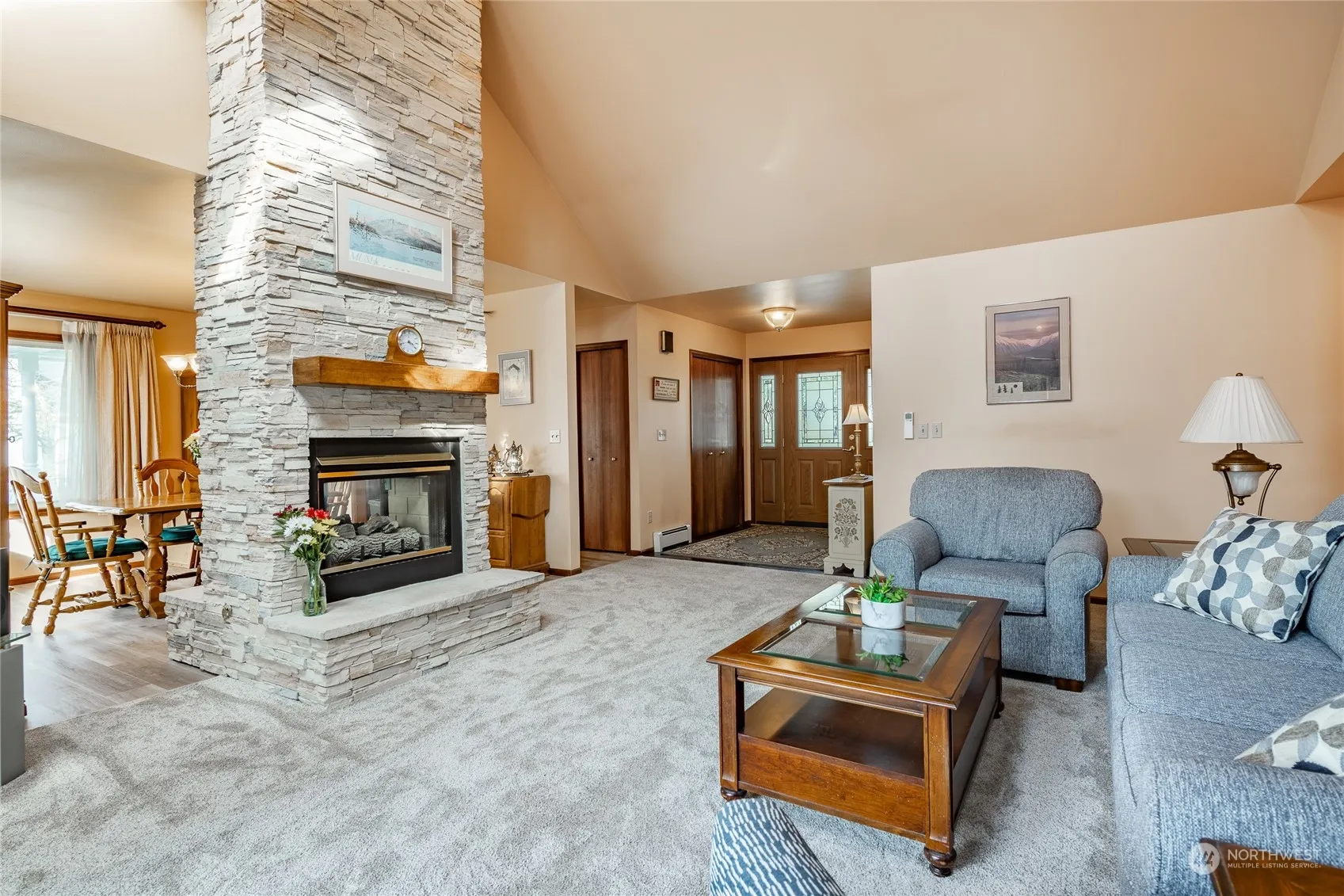 Charming county setting for this one level custom-built home, only 20 minutes to Bellingham or Lynden. Come create your own happy memories here! Enjoy the gourmet kitchen w/higher end SS appliances, Silestone countertops, custom cherry cabinets & access to the back patio. Watch the birds while relaxing by the double-sided fireplace in the living room w/vaulted ceilings or the dining room through large picture windows. An extra-large office is just off the entry/could be 3rd bedroom. The luxurious primary bedroom is large enough for a sitting area, has a private patio, a walk-in closet, dual basins, jetted soaker tub & shower. 2 mini splits keep you cool in the summer. The heated garage is lined w/built-in cabinets. Many mature fruit trees!