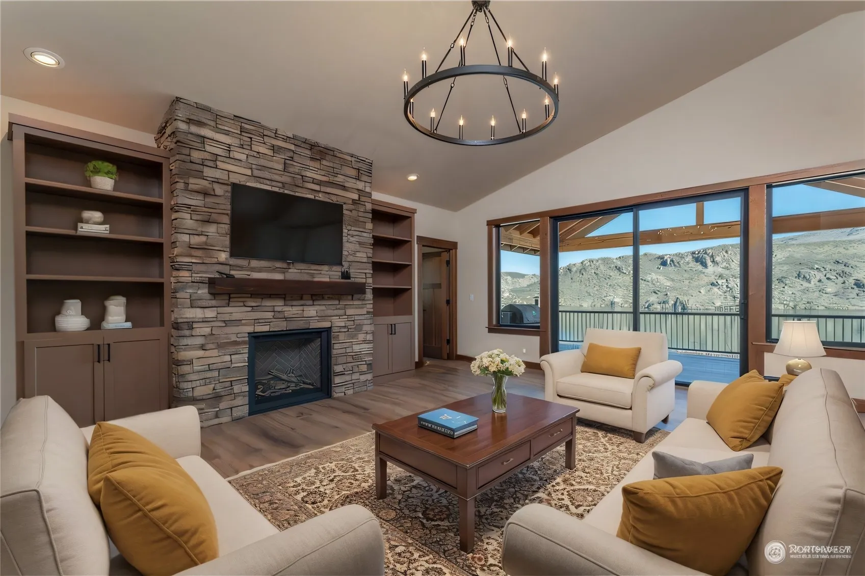 Must Sell! Custom NW contemporary home with incredible views of the Columbia River. The over 3600 sq ft home features a great roomwith a gas stone fireplace, unique lighting fixtures and beautiful LVP flooring. A large chef’s kitchen with custom cabinets, quartz counters, stainless appliances including an induction cook top stove and a custom coffee/wine bar. A spacious main floor en-suite overlooks the river. The bath features a double quartz vanity and tile shower, adjoining a walk-in closet. Also on the main floor are two guest bedrooms with a large jack and Jill bath, an office and a powder room for guests. Lower level has a large entertainment space with a mini kitchen, a bed/bath. Located a short distance from Gamble Sands Resort.