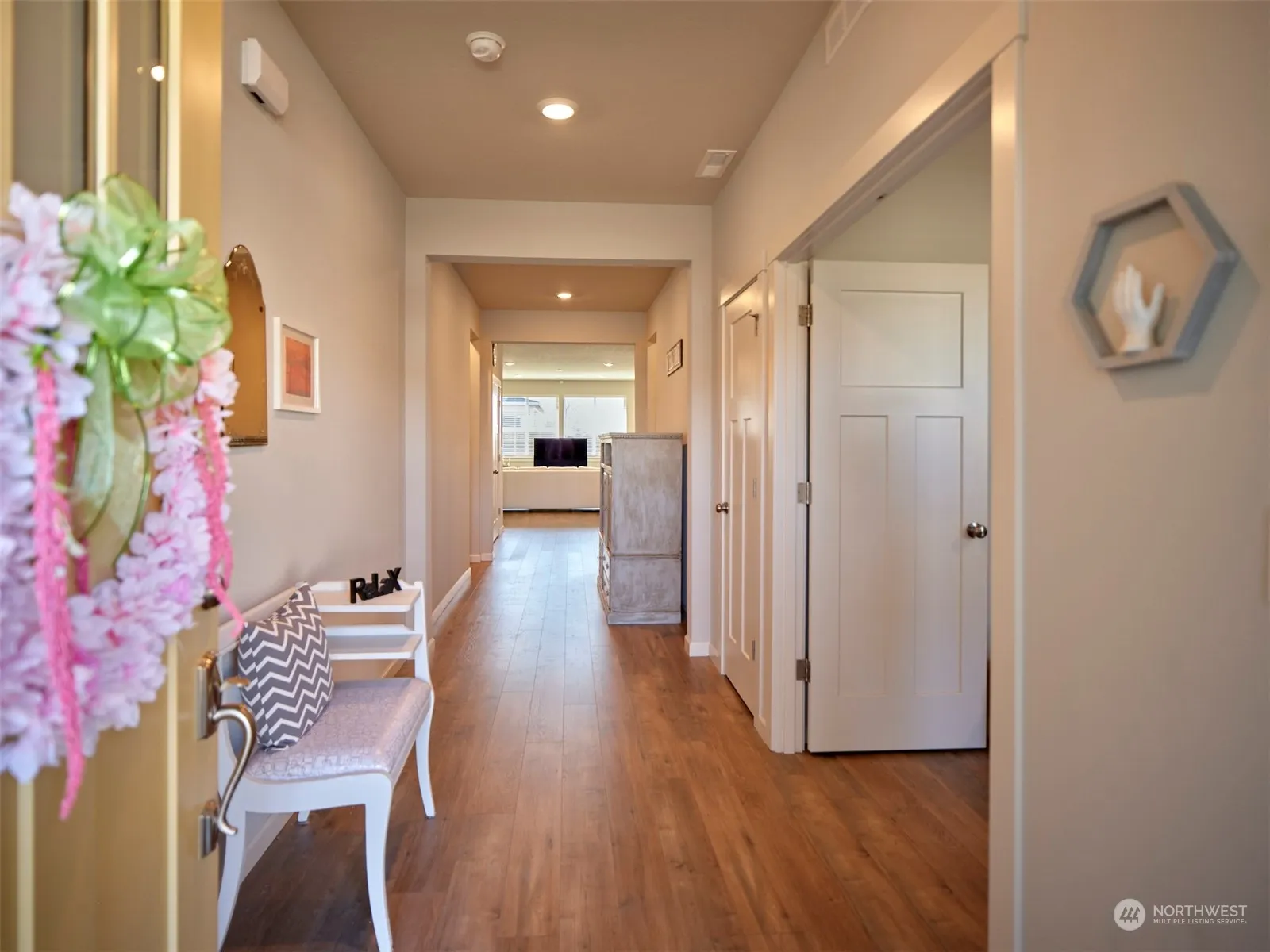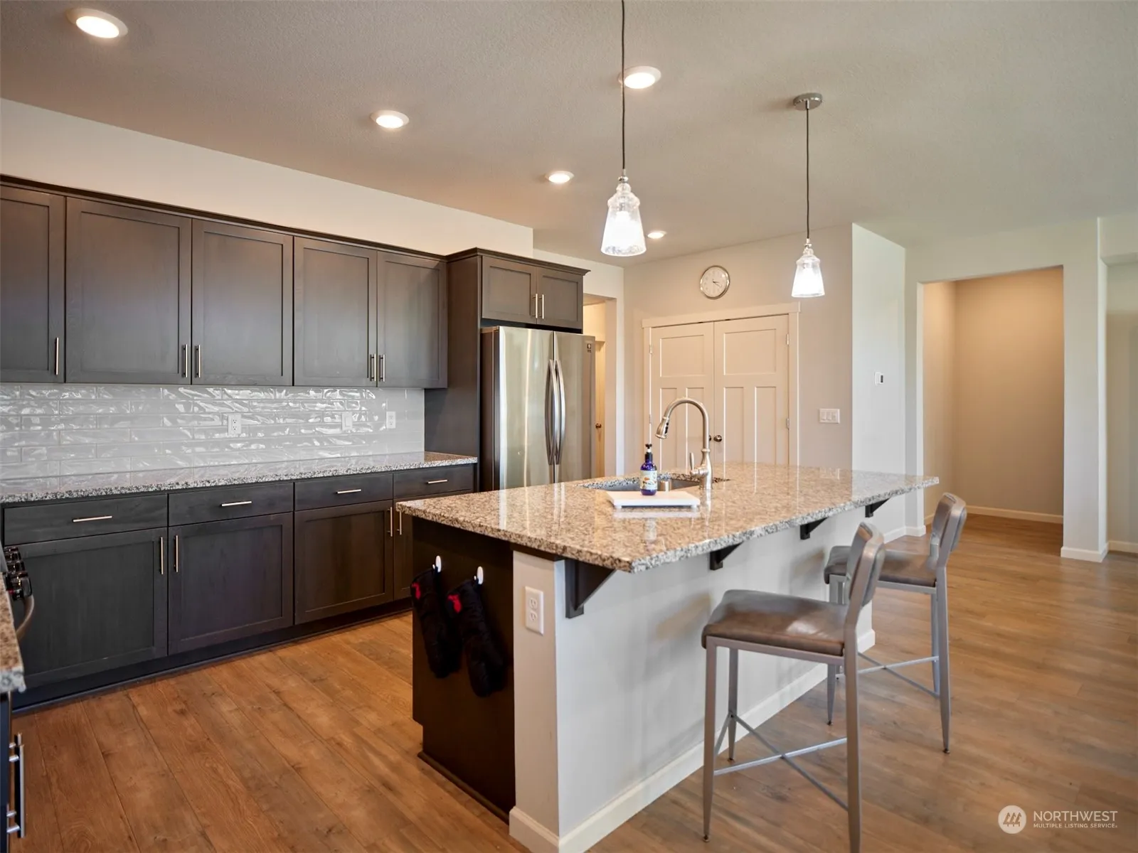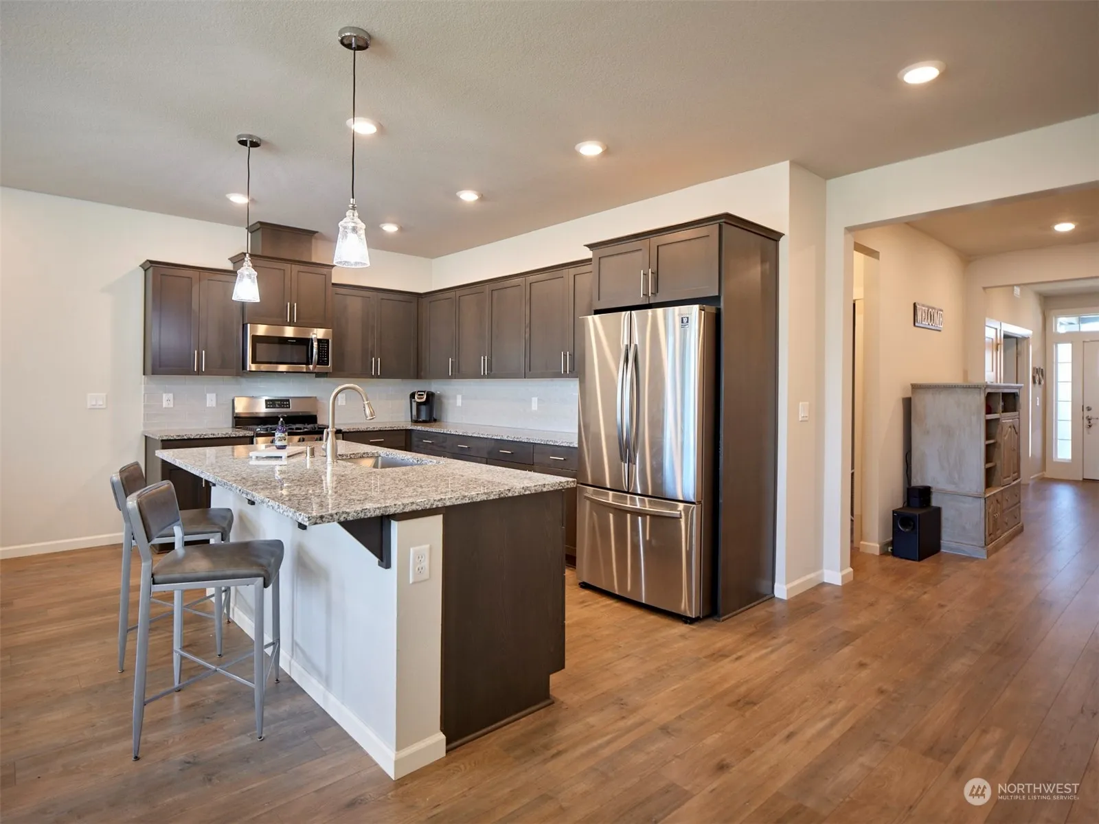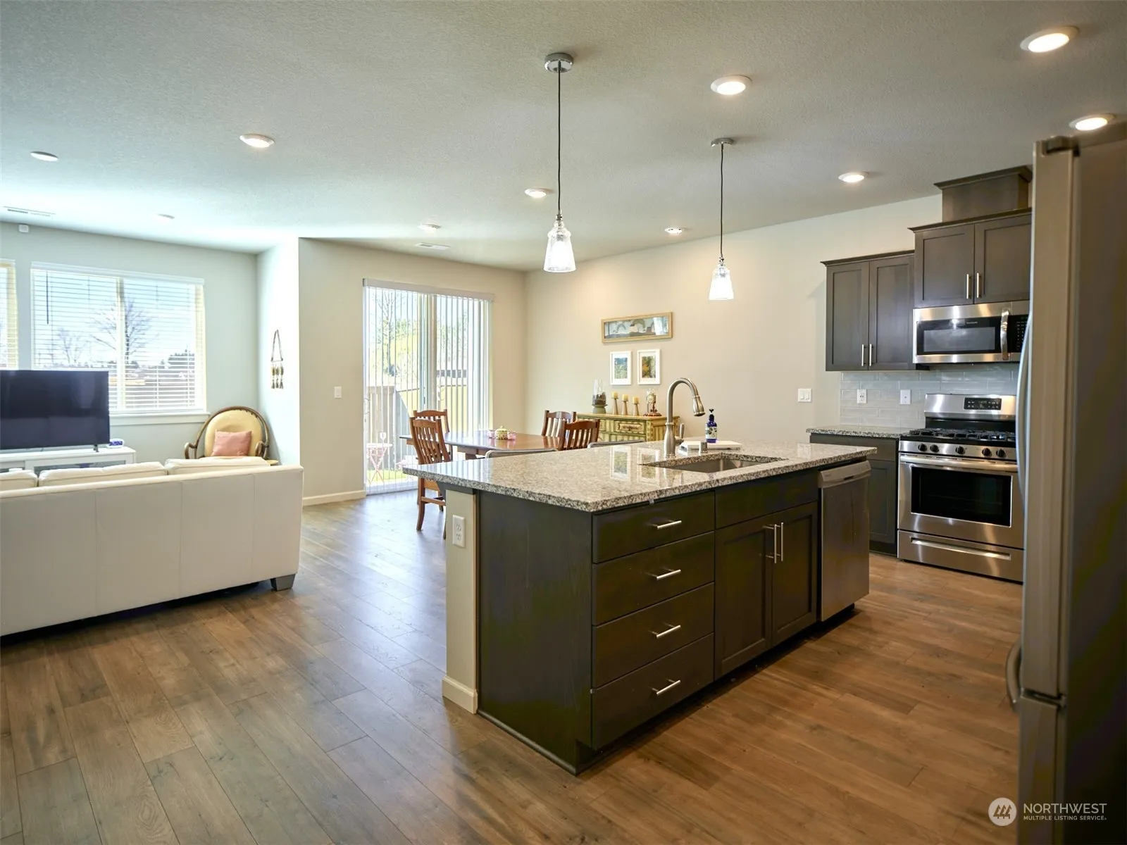 A very clean, one level four-bedroom, craftsman home built in 2022.With *SMARTHOME FEATURES(RING,THERMOSTAT,PLUMBING,BLINDS) A wide foyer enters into a spacious open floor plan with dining, kitchen, and living room. The kitchen has granite countertops and stainless steel appliances with gas oven. Access to the partially covered patio with a private, fenced backyard from dining area. The owners suite is tucked in the back of the home off of the open living room while the other three are off of foyer. It has a spacious master bath with a soaking tub, walk in closet and stand-up shower. Higher open ceilings with tall door frames. Access two car garage from the laundry room. Laminate floors throughout with tile in bathrooms.