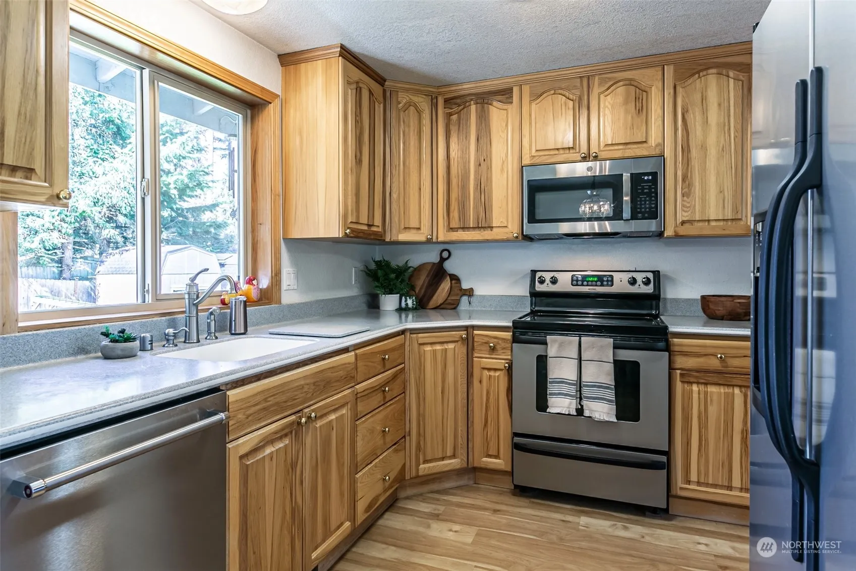 Charming Bonney Lake home on 1/3 acre lot with RV parking. Enjoy 4 bedrooms plus a potential 5th bedroom/office and 3 full bathrooms. The spacious primary suite with his/her closets is located on the main. Entertain in this beautiful kitchen with custom Hickory cabinets. All appliances stay. The basement, with its own exterior entrance, boasts a large flexible living space, ideal for a media room, craft or family room. The fully fenced backyard offers a parklike setting perfect for backyard BBQs. Ample storage, 2 outbuildings, plenty of room for all your toys. Walking distance to schools, Lake Tapps & shopping. Includes fiber optic internet & an automatic start generator. No HOA & minutes to the park & ride for commuters.