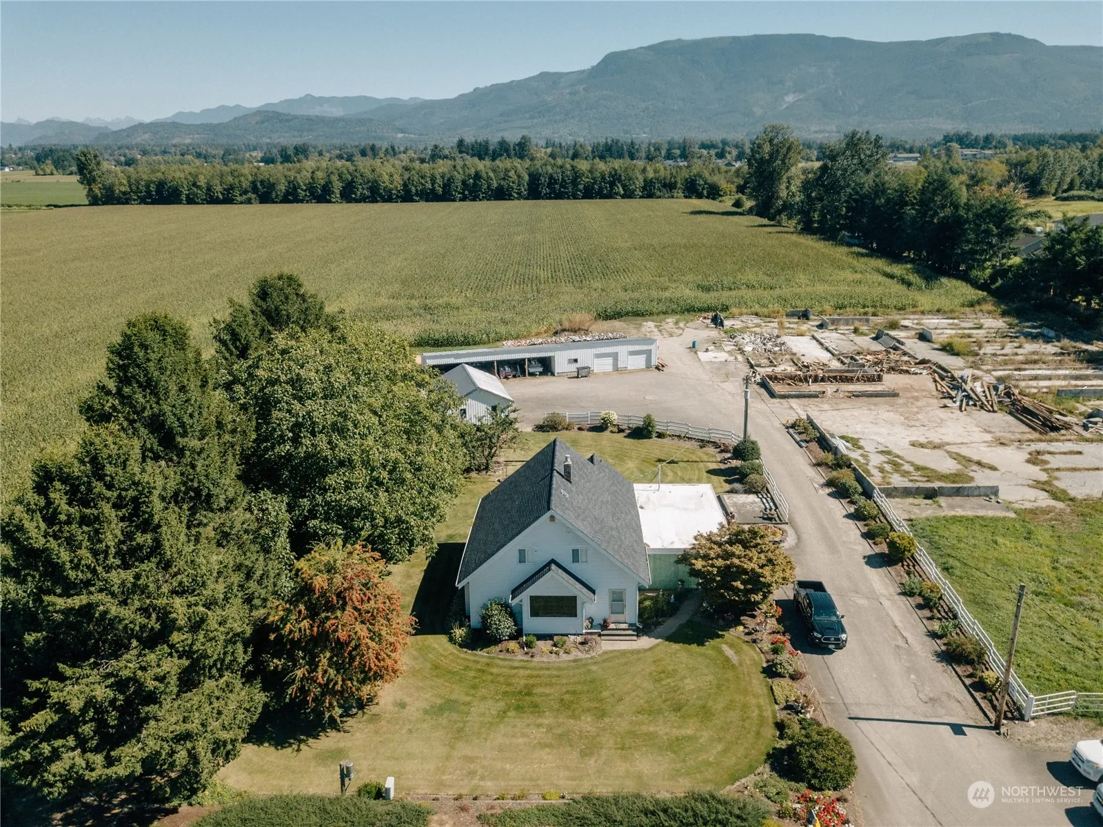 Classic farmhouse on nearly 30 acres with amazing potential. This home features 5 beds and 1.5 baths. Nice sized living room, primary is on the main floor and an office/entry off the dining room! Outside you’ll find a detached garage and a shop with an additional covered area! Right on the outskirts of Everson this property is unique in that it is partially in the city limits! Can sub-divide the city portion into several lots and keep the County portion in AG land.