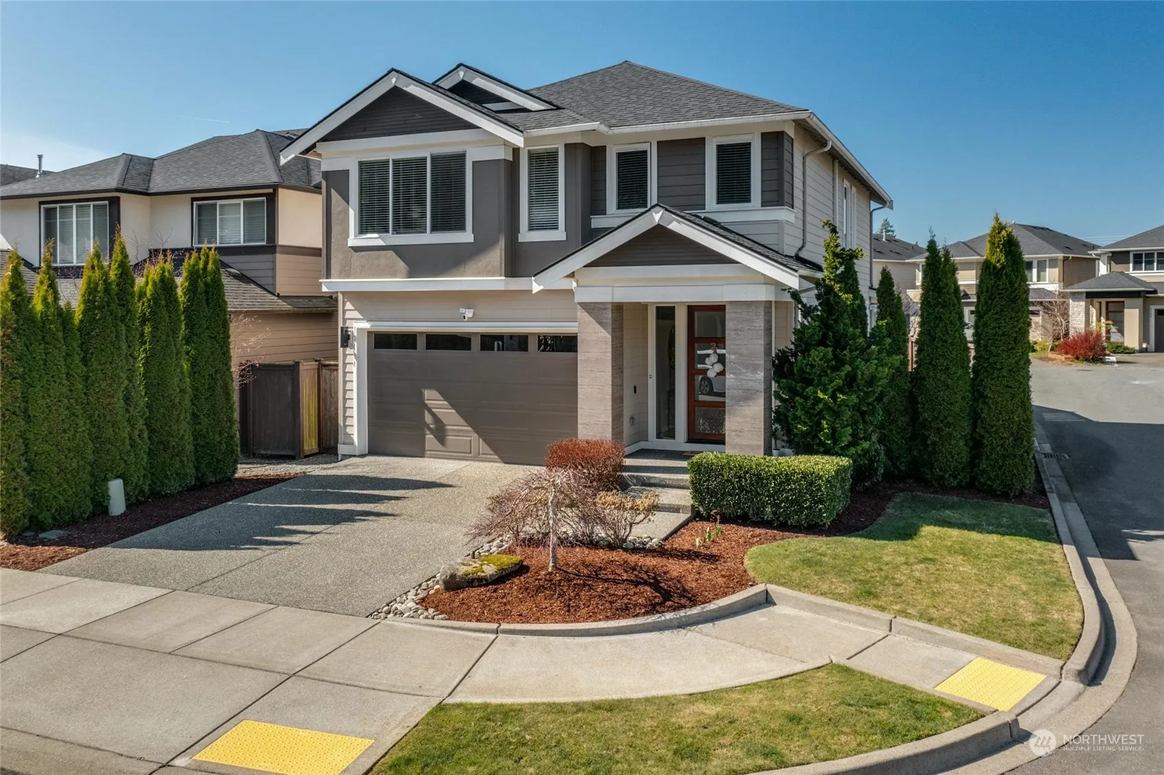 Luxury living in this EAST-facing Mainvue home, Featuring 3 bedrooms, 2.5 baths, and a LOFT. This corner lot property offers privacy and an expansive covered patio and fireplace for cozy evenings. The chef’s kitchen, boasting over $75K in upgrades including a grand island and SS Electrolux appliances, opens to a bright living and dining area with 10×8 sliding glass doors for abundant natural light. Upstairs, enjoy a spacious loft, a primary bedroom ensuite with a 5-piece bath, two additional bedrooms, a full bath, and a utility room. Highlights include A/C, sprinklers for easy maintenance, a fully fenced backyard with a 209sf covered patio with a gas fireplace. Highly rated Everett Schools, Steps to Tambark Creek Elementary. PRE-INSPECTED!