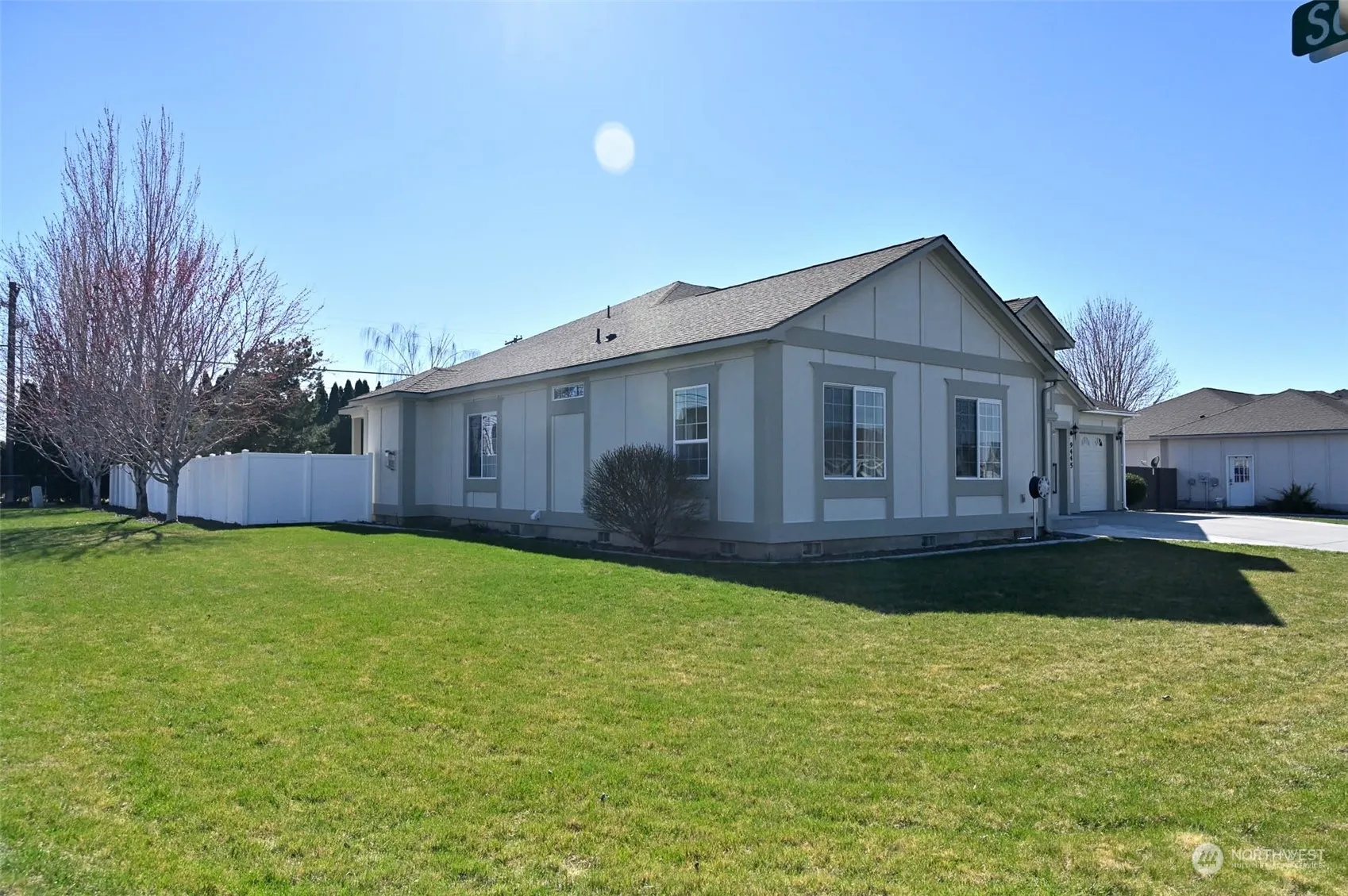 Beautiful Pelican Point area 1-story home with 3 bedrooms, 2 baths home, great room; propane fireplace & dining area. This home has been beautifully maintained! Kitchen with granite tile countertops, pantry & stainless steel appliances. Primary bedroom is very spacious with bath off master, dual vanities, granite tile counters, jetted tub, walk-in shower & huge walk-in closet. Floors are tile, carpet & updated laminate. New HVAC system in 2021 was installed! Central vacuum & ceiling fans. This gorgeous home sits on a large corner lot, over 1/3rd acre, landscaped with a vinyl fenced backyard, full length covered patio & underground sprinkler system. Three-car fully finished garage with insulation added in the ceiling.