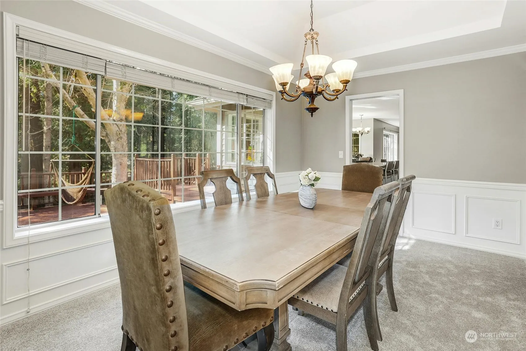 Discover your serene retreat nestled on nearly an acre of tranquil, landscaped grounds. This NORTH facing gem boasts fresh updates including plush carpet, vibrant paint, and a newer roof. Highlights include an office, lofty ceilings adorned with elegant crown molding and wainscoting, plus a newer water heater, furnace, presidential roof, bathroom flooring. The inviting kitchen showcases hardwood floors, an island, Quartz counters and rejuvenated cabinets. Ample storage is available in the garage’s full attic. The outdoor space, perfect for all seasons, features a deck, fire pit and a sport court. Complete with RV/boat parking and proximity to local amenities, this haven combines comfort with convenience. PREINSPECTED