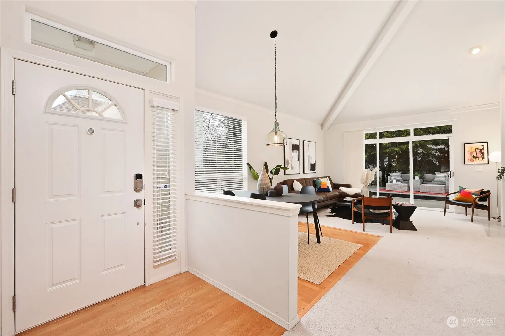 This is a very dramatic and gracious townhouse. Step into vaulted open formal living & dining rooms that lead seamlessly to an entertainer’s 2 tiered deck. Across the back of the deck & yard is a Native Growth Protection Area creating privacy and a wonderful buffer. The primary bedroom on the main which looks out on the buffer, is private, generously proportioned and very well equipped with a walk in closet and a soaking tub. Upstairs aside from the two lovely south facing bedrooms is a great loft space that works well as a home office or fun hangout spot. Gather at the kitchen table with friends over coffee. The kitchen faces SW & gathers in tons of light. This home is in great shape & is ready to offer peace of mind for many years to come
