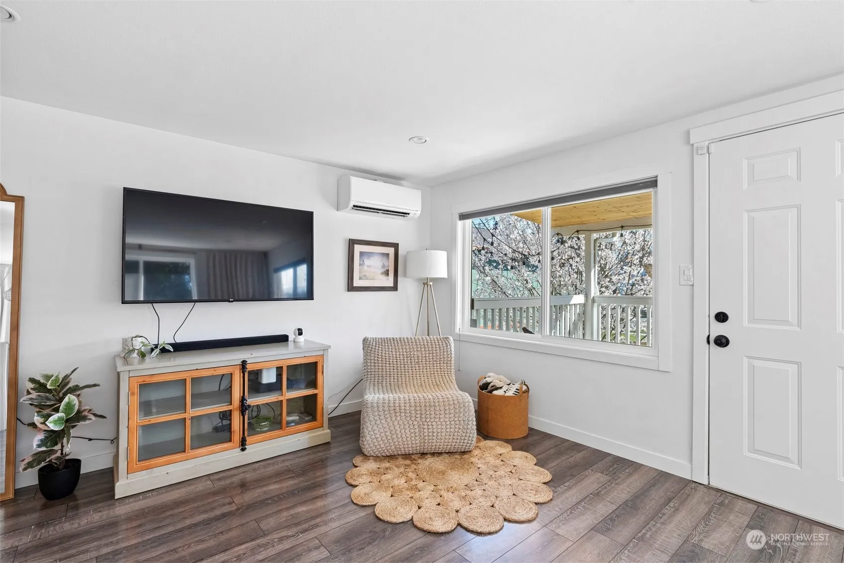 Gorgeous home in charming Snoqualmie just moments from favored local spots! Rest easy on your covered deck knowing major upgrades completed the past 5 years. New roof(2019), carpet&hardwoods(2021), interior/exterior paint plus designer finishes /lighting(2023). Best of all-new high efficiency mini-splits keeping summers cool & winters warm. When not enjoying the new fenced front yard or taking in mountain views from the wading pool, tinker in your oversized 24’x17′ garage with massive lofted space awaiting your touch! The modern interior boasts an ideal open concept flowing easily from kitchen to dining & living areas, plus a primary bedroom & updated bath. Upstairs makes the perfect flex, office or nursery space next to the second bedroom.