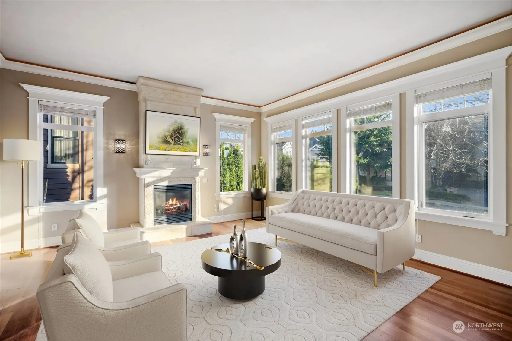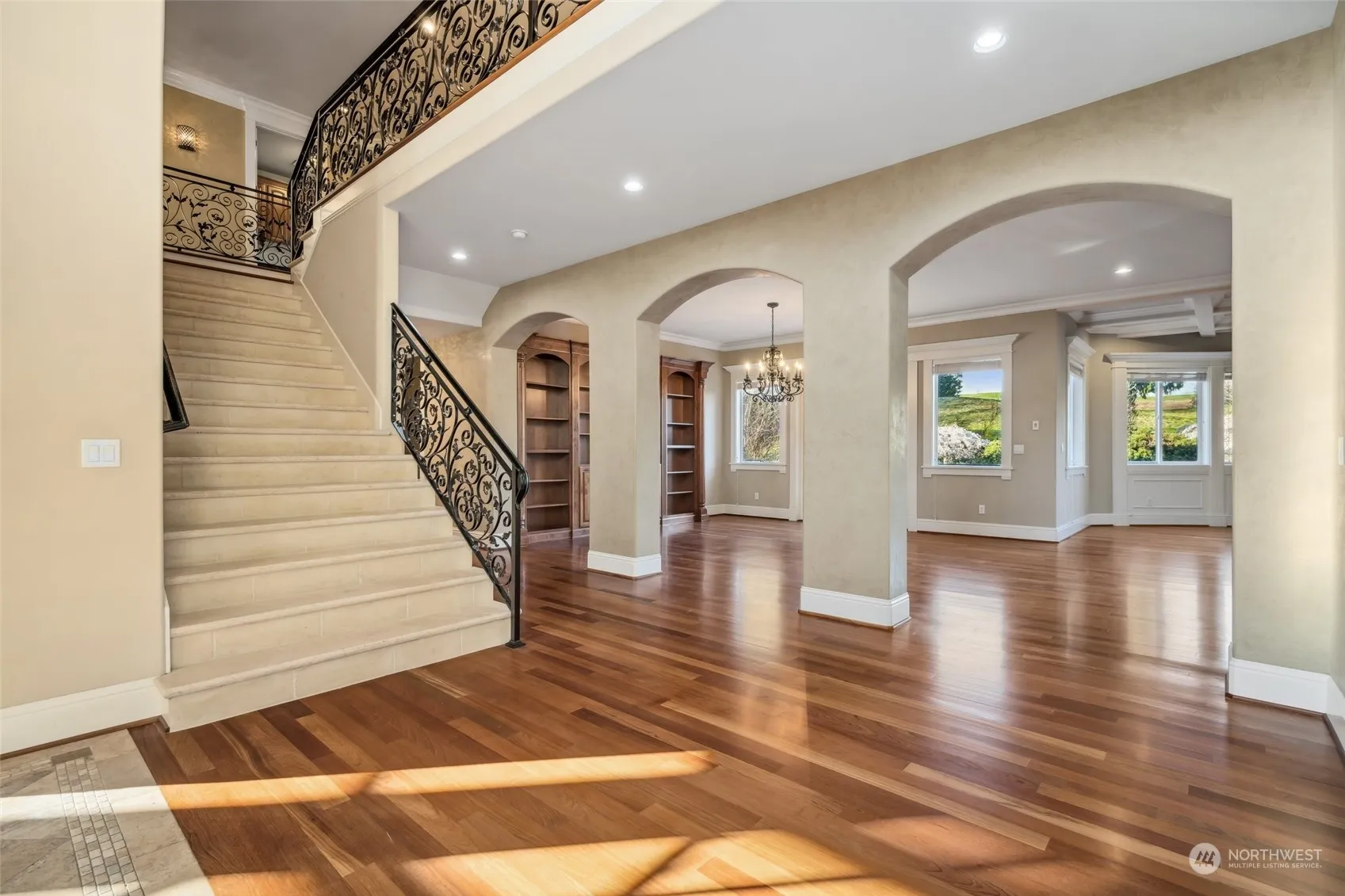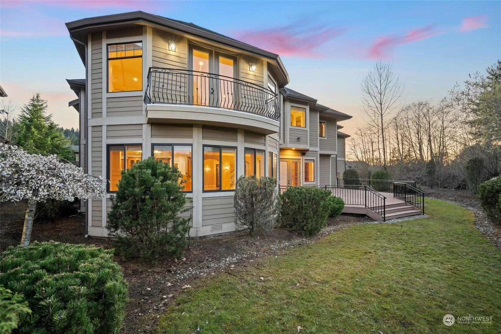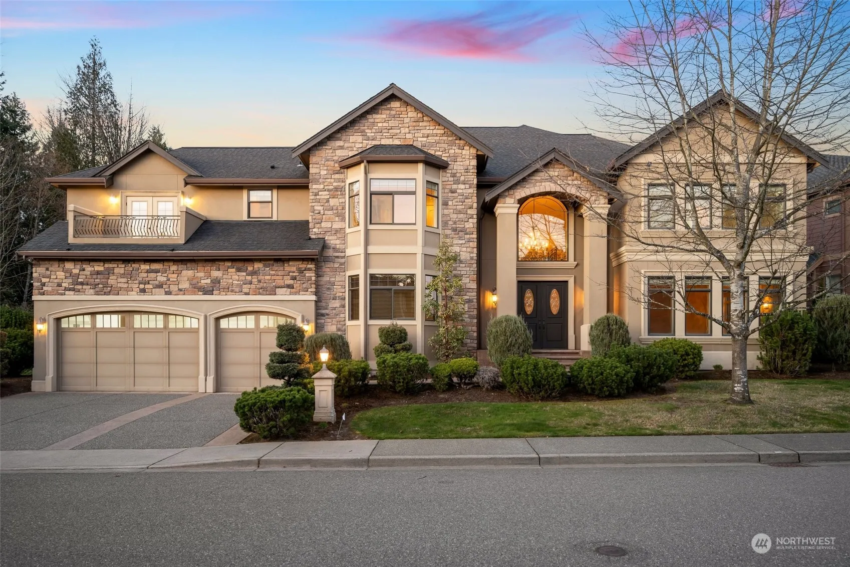 The Reserve at Newcastle. This 5,340 square foot home is located off the 3rd tee box of the Newcastle Golf Course and has 4 bedrooms and 4.5 bathrooms. Gorgeous updates and upgrades throughout. Brazilian cherry hardwoods and pristine finishes. This stunning estate will leave a lasting impression – Grand foyer welcomes you with soaring ceilings and a dramatic wrought-iron staircase. Entertain effortlessly with both casual and refined living spaces. Gourmet kitchen hosts granite slab, cherry cabinetry, and Viking appliances. Spacious primary bedroom with cozy fireplace, balcony, luxurious 5 pc en suite bath and walk-in closet. Closet built-ins throughout. All of this plus 3 car garage, award winning schools and easy access to Bellevue.