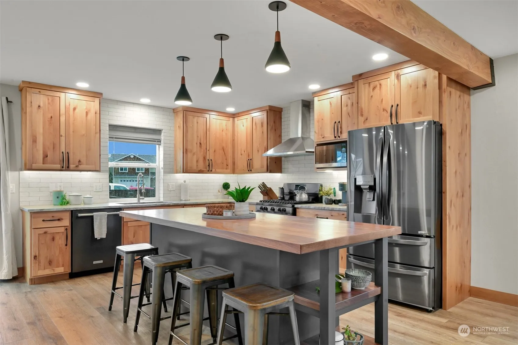 Stunning Richmond design home situated on a spacious sunny corner lot. Recent remodels including upgrades such as LVP flooring, lighting, large oversized kitchen island, granite counters, subway tile backsplash, cabinets w/ under cabinet lighting, bathroom flooring & vanities & modern style window treatments. Enjoy the elegance of the beautiful wood aesthetic touches and the convenience of a gas range. Featuring a bonus gym space upstairs, perfect for fitness enthusiasts. Additional highlights include new int & ext paint, large backyard patio & new fencing. With its ideal location near the best Birch Bay beaches & retail, this home offers coastal living with an easy commute to Bellingham & the border. Don’t miss out!