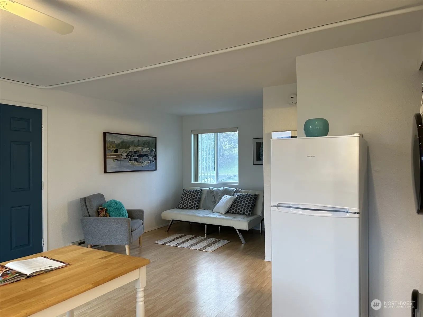 Located in the popular Uptown Area of Port Townsend is this cozy condo with balcony overlooking beautiful Kai Tai Lagoon, Manresa Castle and the Olympic Mountains. Primary home, getaway, or warm winter space while you work on your boat. This 295 sq ft home has new appliances: washer/dryer, refrigerator, and a range with self-cleaning oven. Newly remodeled bathroom and living space. End unit- no neighbor on one side or below. Park in front of steps- only 8 steps. Walking distance of the farmer’s market, co-op, library, theatre, the Port and much more. On the free bus line too. A must see!
