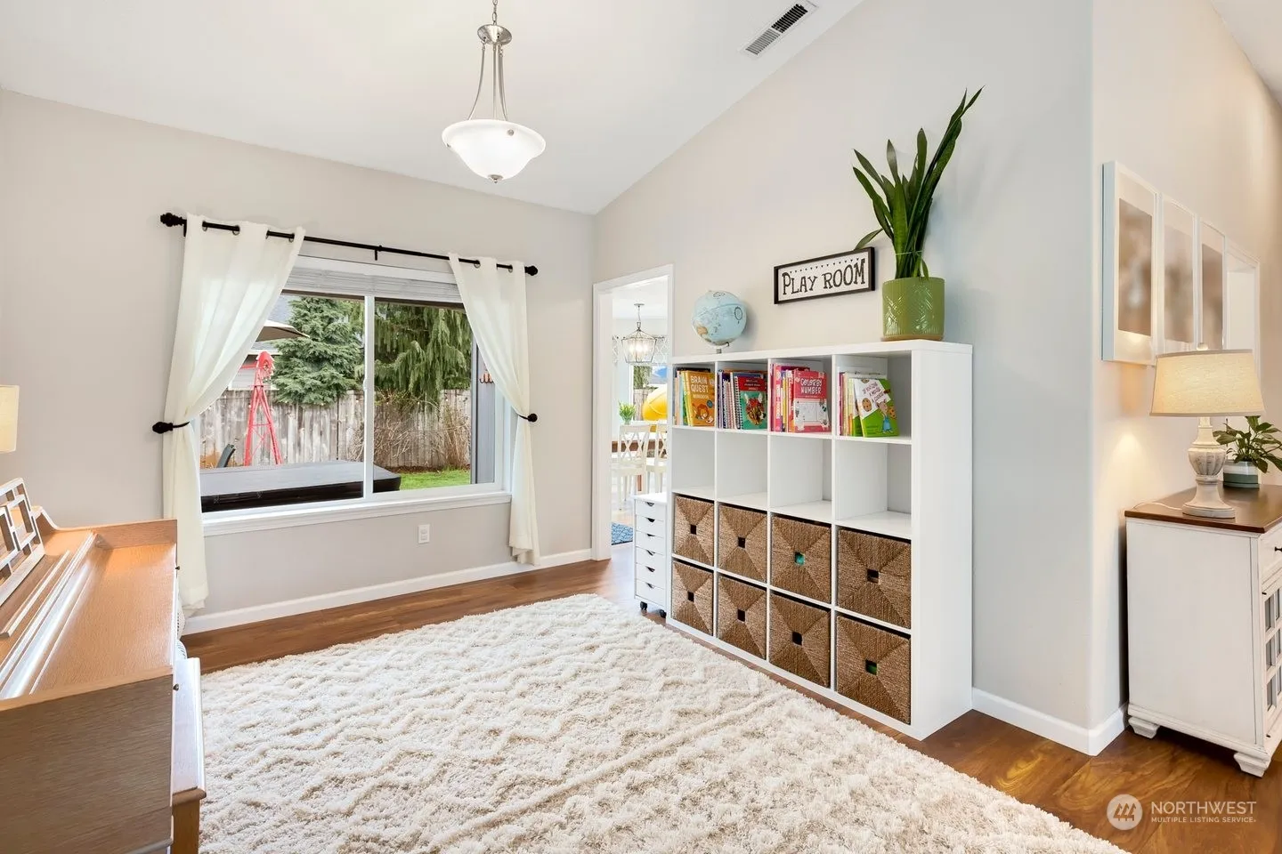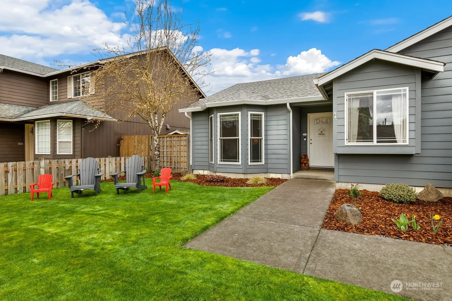 Escape into tranquility w/ this charming 1 story retreat, in a peaceful neighborhood. Feel the beauty of new laminate flooring welcoming you into the living spaces. The heart of the home, a cust-designed kitchen by NW Kitchen Design, culinary adventures w/ its stylish cabinets, Quartz counters, & a suite of SS appl including a 36″ wide 6 burner gas range w/hood is perfect for everyday cooking. Sunlit rooms w/ vaulted ceilings & newer double-pane windows offer a cozy ambiance, while the spacious bdrms promise restful nights. Step outside to your own private sanctuary—a fenced backyard where you can unwind & connect w/ nature, enjoy a meal on the covered patio or simply loung w/ a good book, sheltered from the elements. Make this home yours!