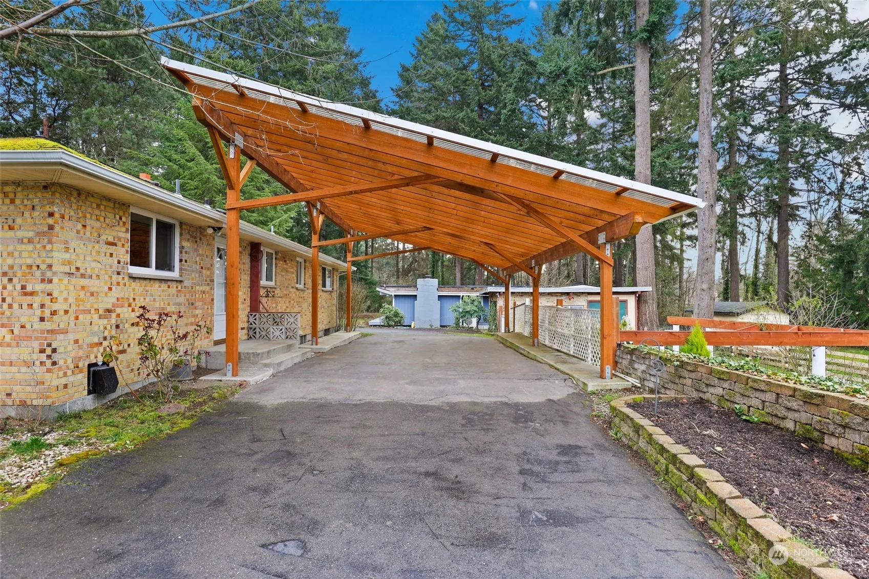 This spacious 3-bd Federal Way home is on a private wooded road just shy of 1/2 acre lot. The brick home features an upper unit w/open concept living, dining, kitchen, 2-bds, & large ba. The lower level in basement continues with open concept living & is sound-insultated with a separate outside entrance, 1-bd, 1-ba, dining, kitchen & large office/laundry room-perfect for “mother-in-law” or other rental. Most appliances updated, including new minisplit AC/heat on each level. The outdoor features include a beautifully manicured yard w/sprinklers, patio, fully fenced areas, several out buildings, & a large covered parking area. Located minutes from Federal Way, Dash Point, Tacoma, & SeaTac yet quiet & separate enough to feel like an oasis.