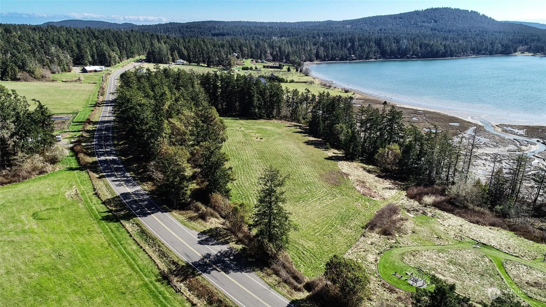 Rare opportunity near Roche Harbor. Spectacular parcel, nearly 5 acres, ideally located for both privacy & easy access. Southwest-facing water views, open meadow, and woods, with Roche Harbor water (hookup fee has been paid), power, phone, and a 4-bedroom septic design. High-speed fiber in road. All day sun on a quiet cove. Easy walk or bike ride to Roche Harbor airstrip, marina, shops, and restaurants.
