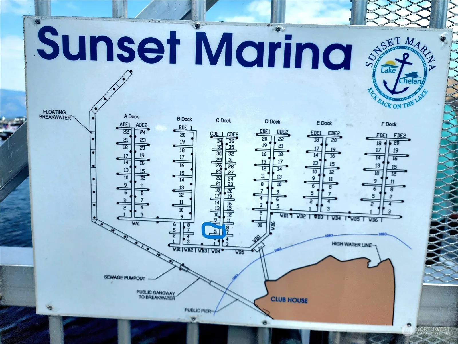 Sunset Marina at Lake Chelan #C5 – 24-foot boat slip PRICED TO SELL. Lake Chelan’s Premier Waterfront Community. Slip C5 is in a prime protected location close to the Club House. 24/7 gated marina with deep-water year-round boat moorage. Each slip has water, power, Wi-Fi plus use of pump-out facility located on the breakwater. Amenities include a private lake view clubhouse, wet bar, TV’s, fire pit, BBQ area, bathrooms with shower, laundry room, security, spacious deck and patio areas, private parking lot, an area to reserve for private parties, game room and more. Covenants allow for 3-night minimum rental + weekly, monthly or yearly rental. Year-round HOA Manager & Dock Master. Less than 2 miles to downtown Chelan amenities.