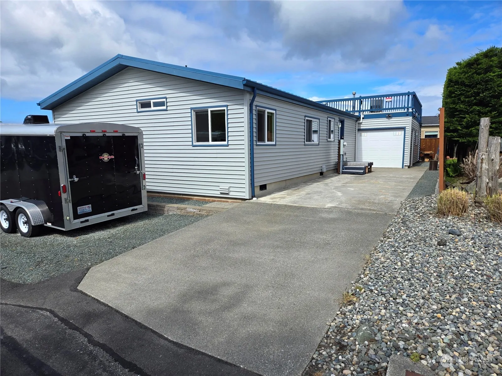 Ultra Efficient, low maintenance manufactured home, you will fall in love with. Updated items: metal roof, high quality insulated vinyl siding, most windows are triple pane, gas furnace, gas hot water heater & air conditioning. Complete concrete foundation and floor. Three car garage with commercial grade gas furnace, perfect as heated shop and garage. Check out outstanding rooftop deck with new staircase & cedar railing, great way to spend a warm summer day. Alarm system, RV parking and so much more. Skyline amenities include, sports courts, playground, club house, sea side cabana and more. Washington Park close by with boat launch, playgrounds, BBQ picnic area next to the beach, amazing hiking trails or walk the loop.