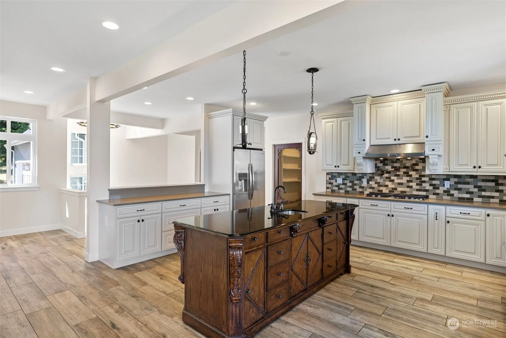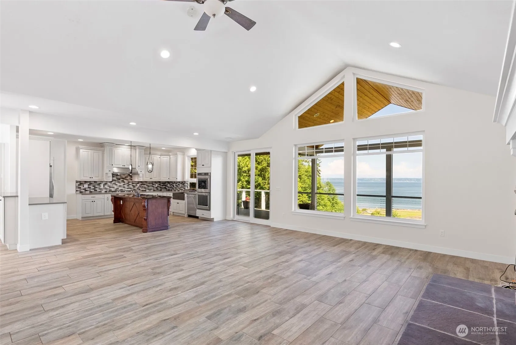 Live the coastal dream! This remarkable home offers breathtaking water views & direct beach access. Cozy up by the fireplace, entertain effortlessly in the chef’s kitchen & relax on the spacious deck w/panoramic 180-degree vistas of the majestic Puget Sound. The main level features a captivating primary room w/a luxurious 5-piece ensuite, including an indulgent soaking tub & a generous walk-in shower. Downstairs, two guest rooms await w/private bathrooms. Bonus rooms provide endless possibilities, whether you need a home office, workout space, or personal retreat. Plus, an insulated and plumbed 1241SF upper floor is ready for your creative vision. Embrace your dream in this idyllic coastal oasis. Virtual pic of unfinished room.