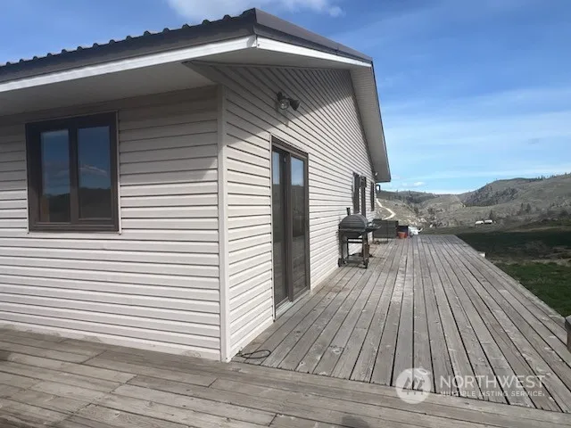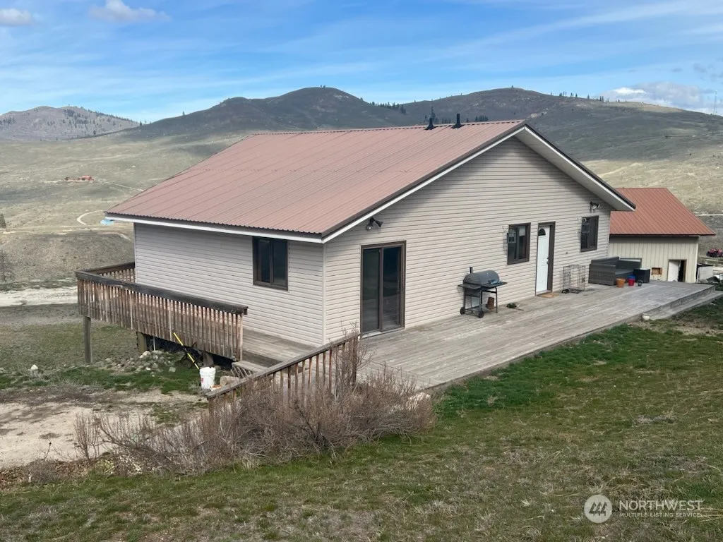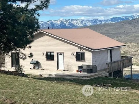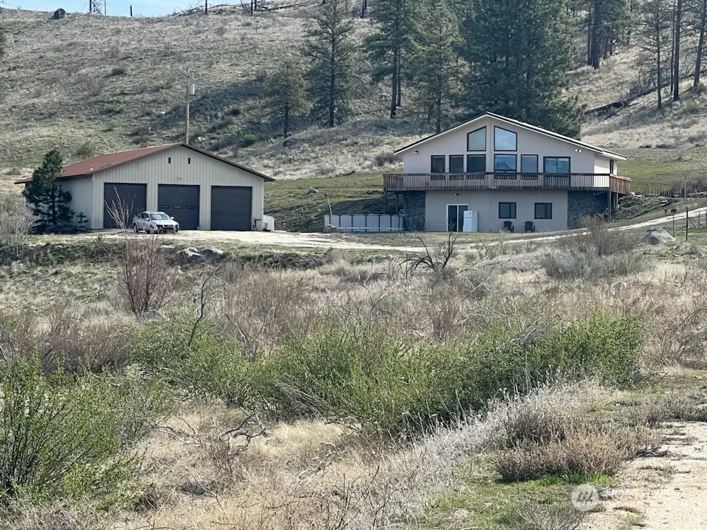 Excellent views from 2500′ of the Cascade Divide between the Methow and Lake Chelan, the Buckhorn range and Indian Dan Canyon. Lots of space on the 20 acres surrounding this 2400’+ home, split between the main floor and a full, daylight basement. Vaulted ceilings, 5 large picture & 2 gable windows and a slider to the wraparound balcony give a panoramic, full front view from your own living room. Two bedrooms up and partitioned lower level could be a third (or fourth) bedroom. Huge 1920′, 3-bay shop/garage with 1/2 Bath. XX Skiing right out your door as well as 3 other seasons of all kinds of recreational opportunities in sunny North Central Washington.