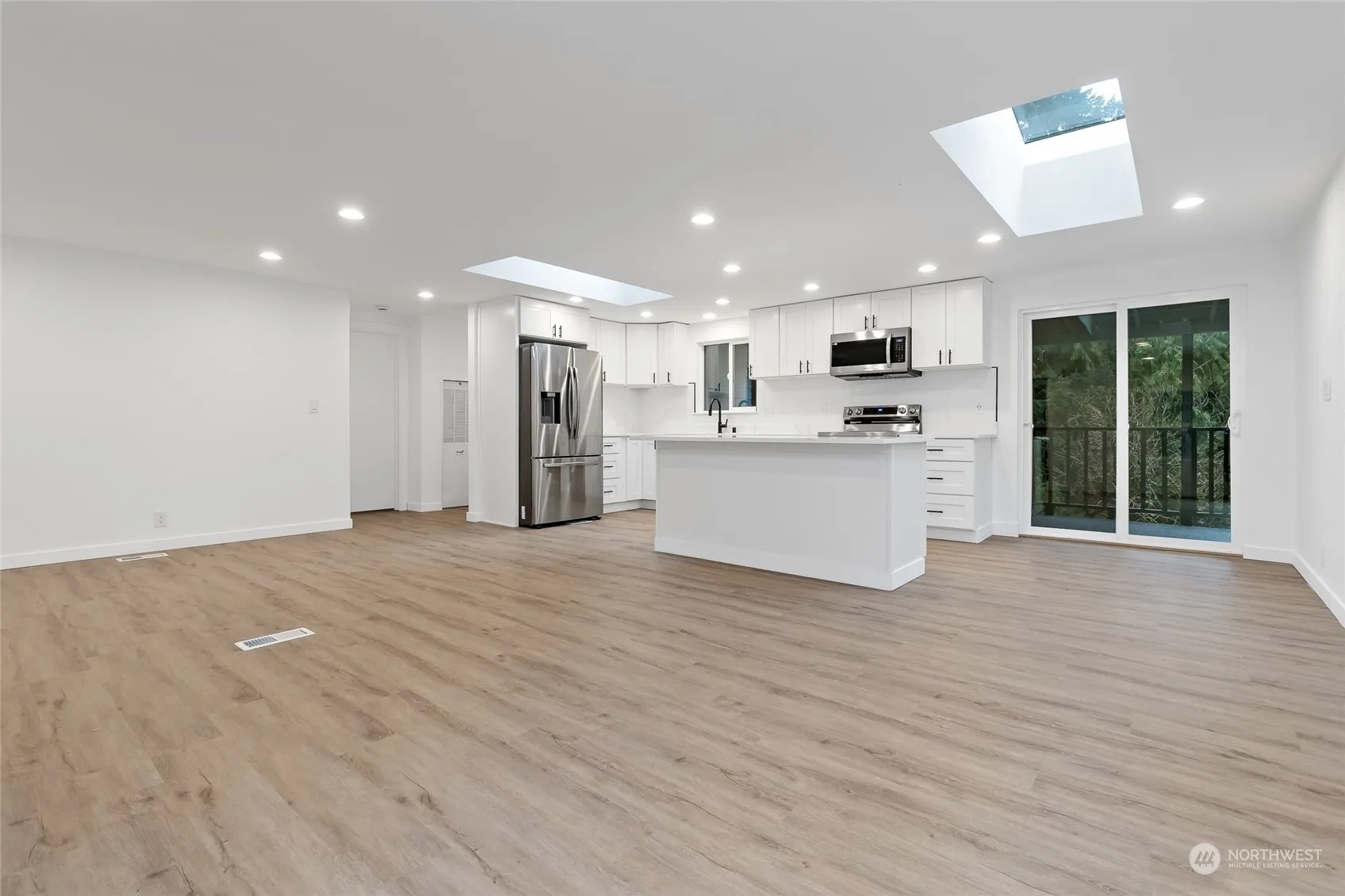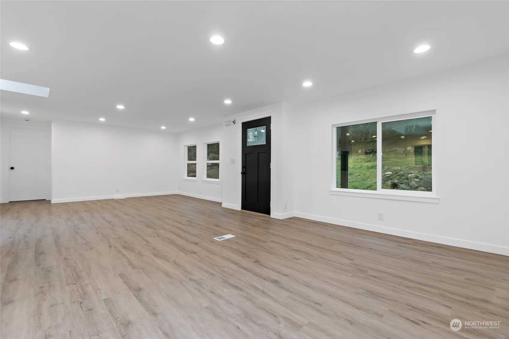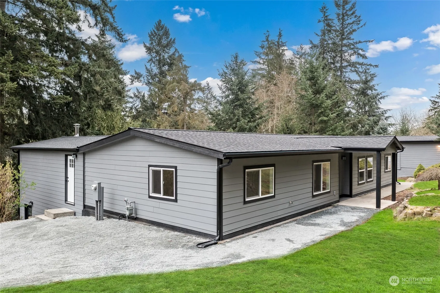Beautifully updated 3 Bedroom home with bonus room, office/den & 2189 SqFt. Walk inside & fall in love with the open floor plan & designer finishes throughout. Brand NEW custom kitchen is perfect for entertaining guests with large center island & open to dining/living room. Kitchen Features white cabinets, quartz counter tops & stainless-steel appliances. Large primary bedroom comes with updated bath.Other updates include NEW interior paint, mill work, doors, fixtures & flooring. Walk outside onto your oversized deck & overlook your 1.1 acre lot. Property also comes with multiple private park access to Lake Tapps, boat launch, swimming area,sports courts.Spend your days relaxing & playing on the Lake. Will need cash or special financing.