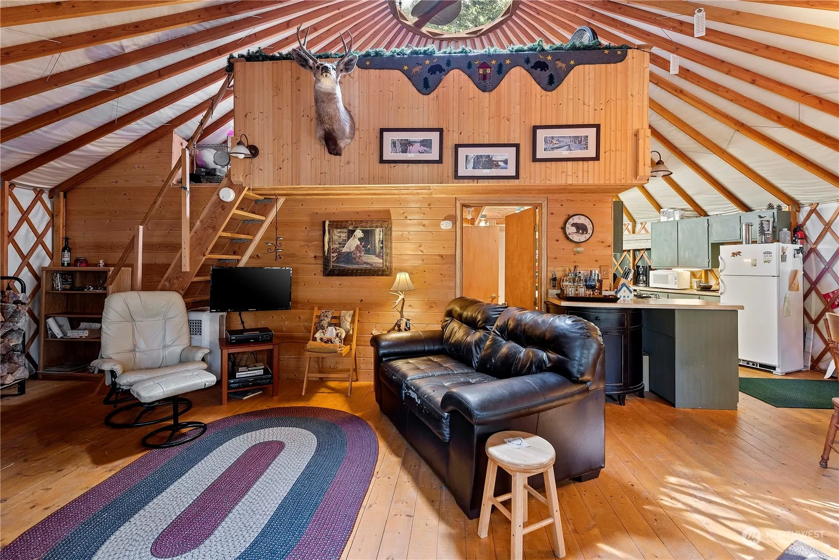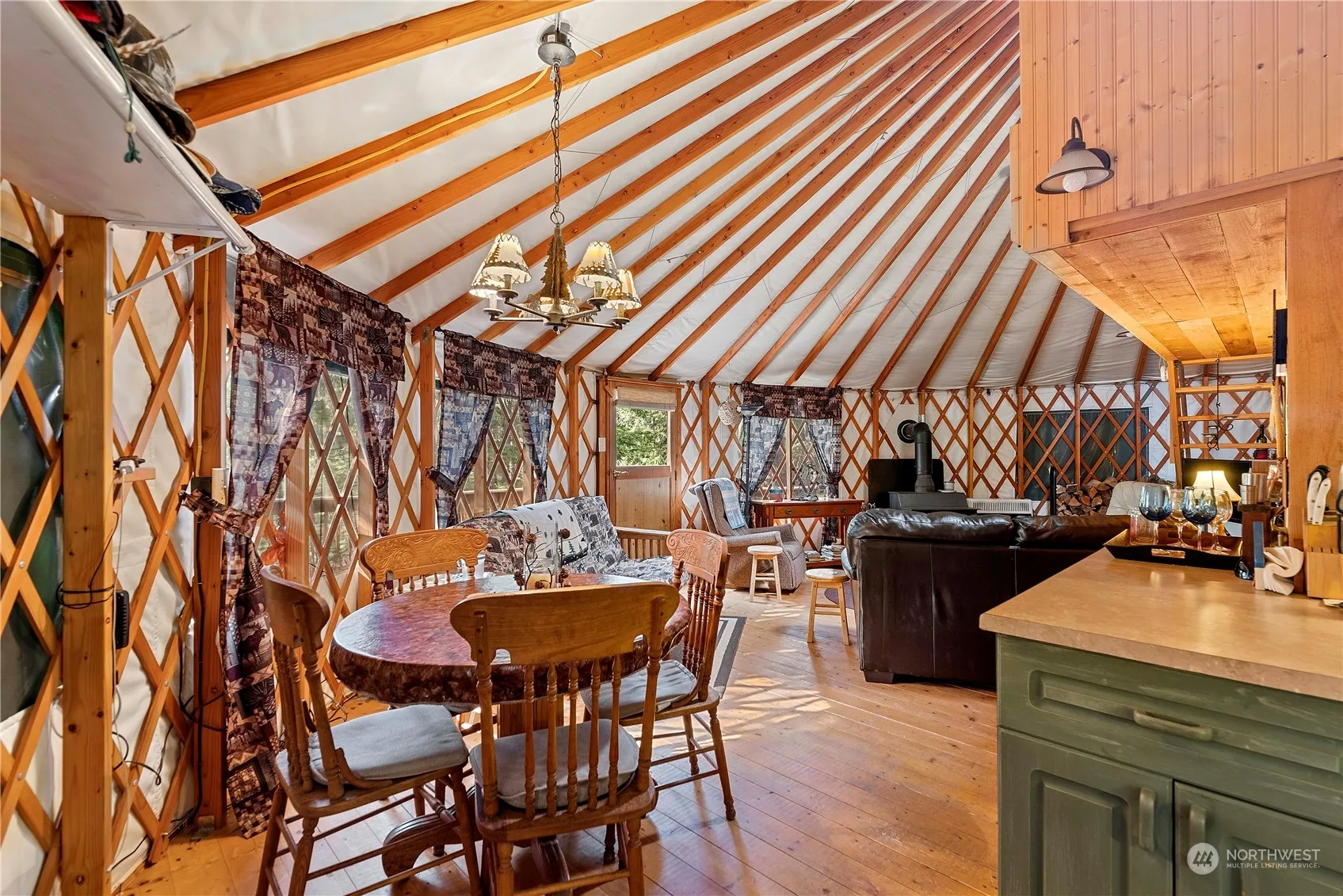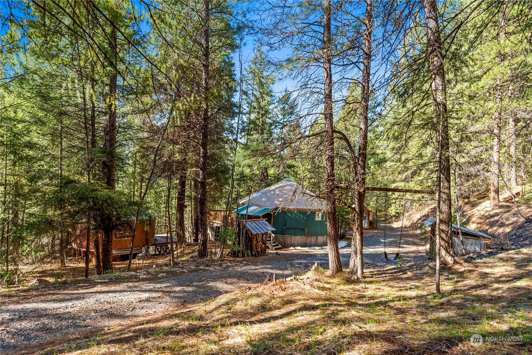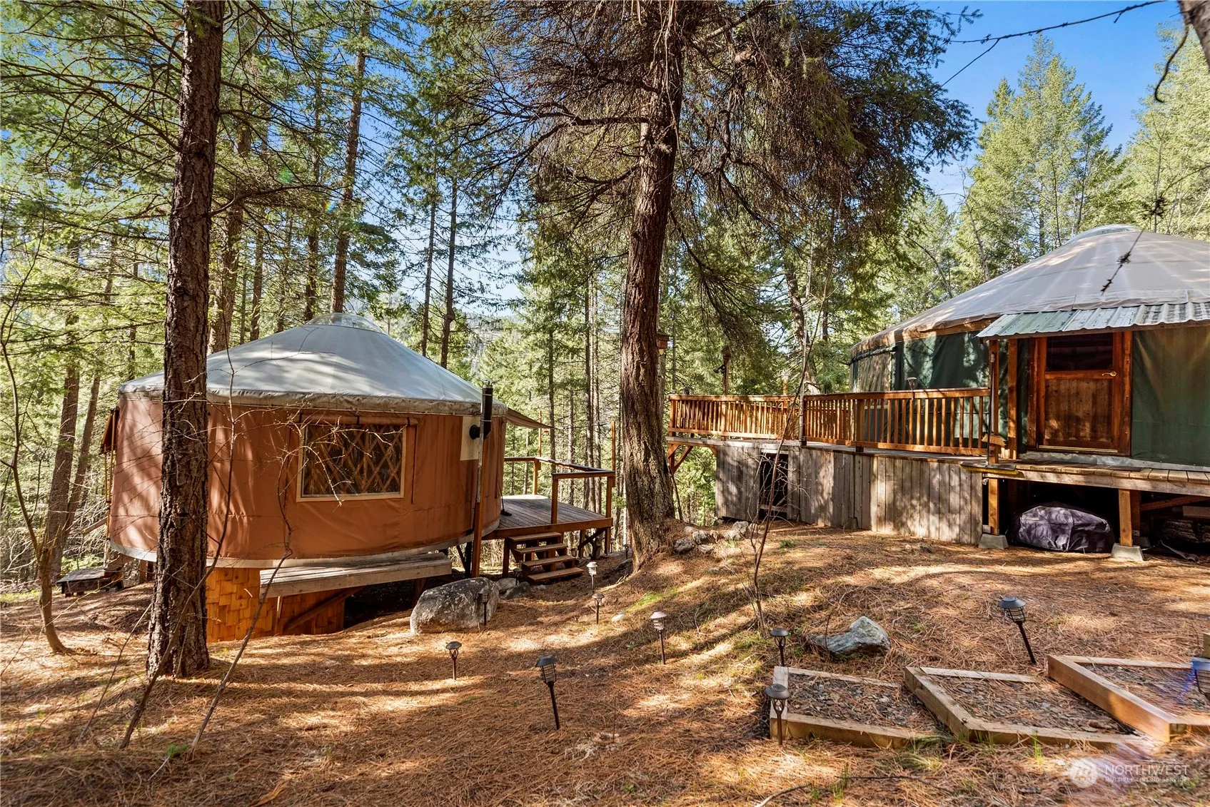 Over 20 acres off grid living paradise! just off hi-way 97 and 15 mins to Leavenworth, property is located on a private gated driveway with trails leading to National forest W/ views of the towering mountains . There are two furnished yurts large has 706 living space, with kitchen, dining area, living room w woodstove, loft, full bath and bedroom. The Smaller is 314 ft living space with full bath, kitchette, propane heater and wood stove. Electric power supplied by 2 remote generators, water source is an underground cistern tank gravity fed, there are 2 wood sheds a workshop and a 500 gal. propane tank, on demand water heaters & septic system. site has been prepped for well drilling, seller will give credit towards cost of well of 10k.