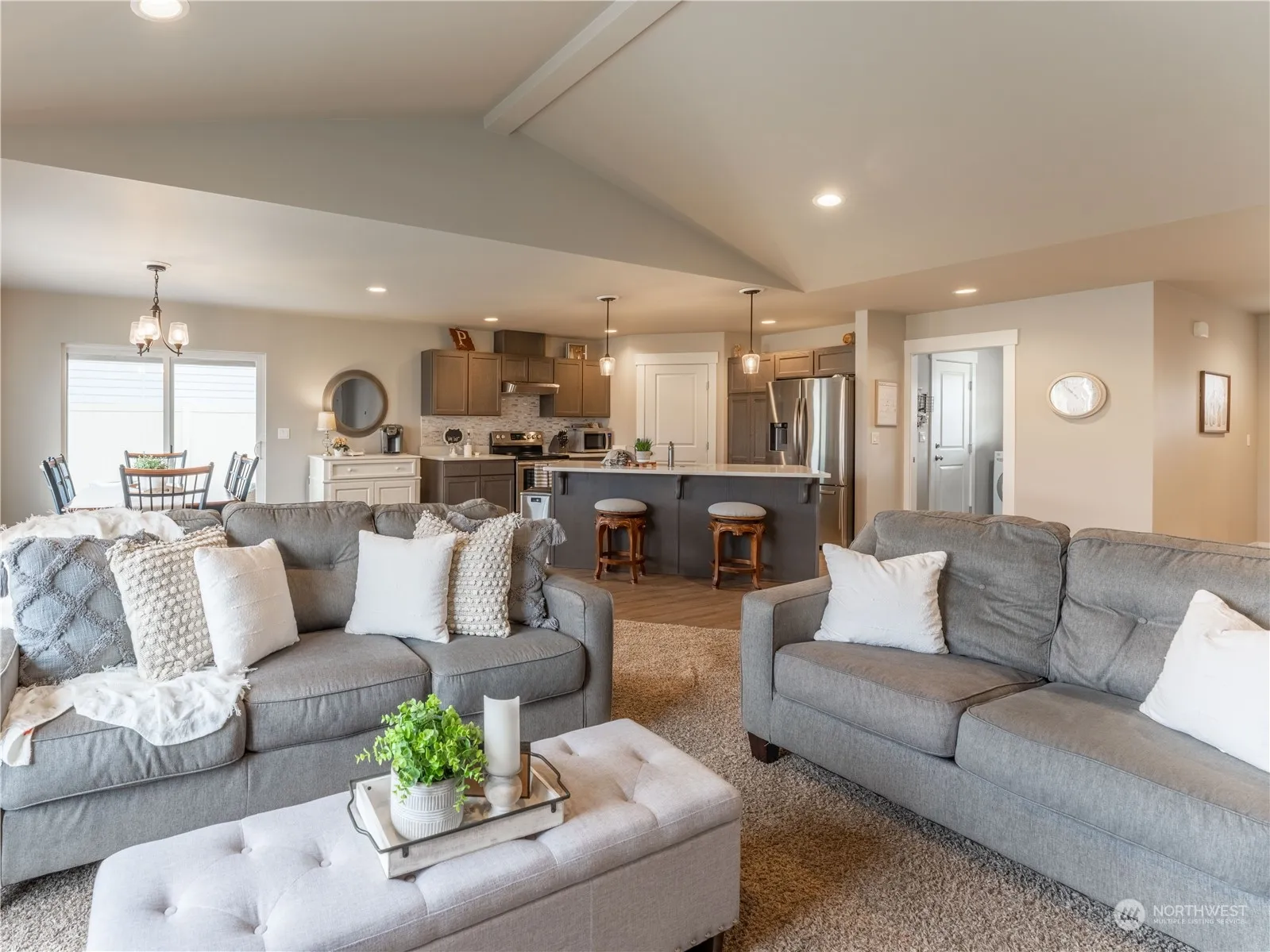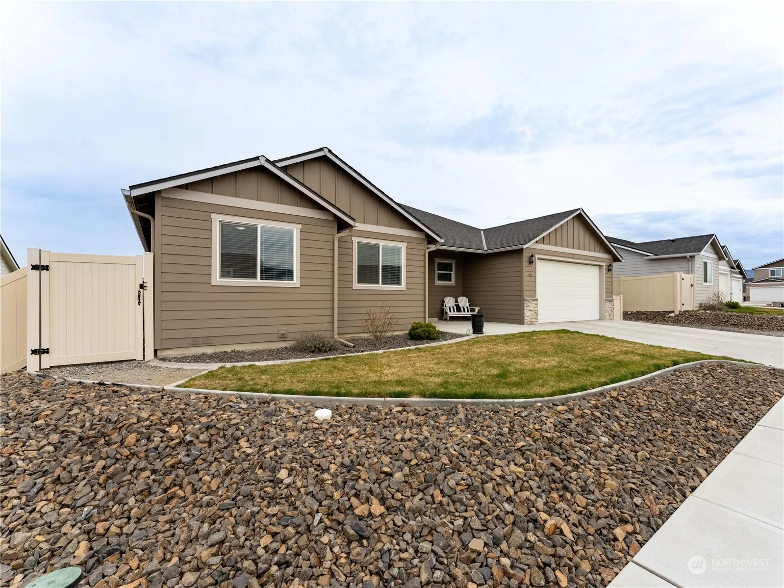 This “better than new” rambler features an open layout and a cook’s kitchen with quartz counters, stainless appliances and an eating bar. The spacious primary suite is separated from the other two bedrooms offering privacy. The primary bathroom features double sinks and a walk-in closet. Easy entertaining in the backyard with a spacious patio, fenced backyard and a shed. Summer evening BBQ’s are right around the corner.. 3rd bay tandem garage with room for storage and gorgeous mountain views! Move in and relax. All the work has been done.