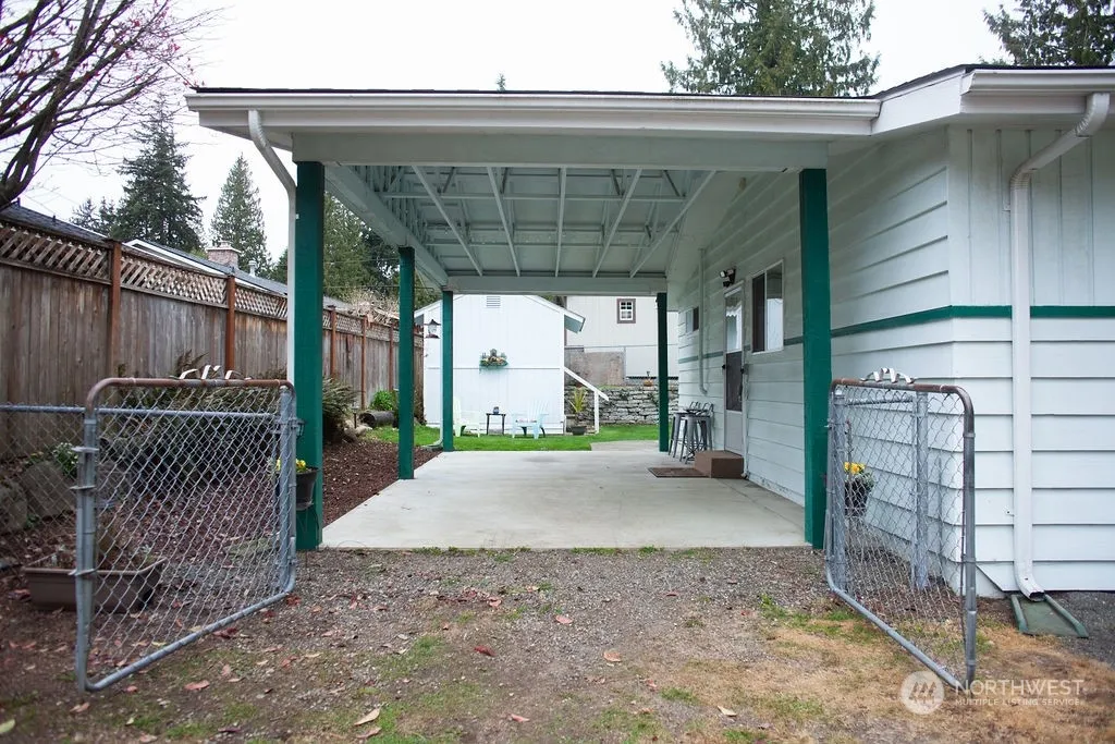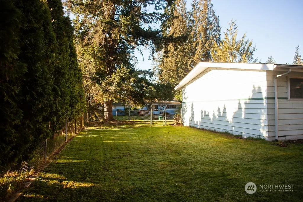 All one level Mid-Century Rambler w/Multi-Generational living option. Layout provides rental opportunity. Live in one side/rent the other w/it’s own separate entry that includes all new flooring & updated 3/4 bath. This space makes an ideal Primary Suite/Family room/Air B/B or MIL unit. Your choice! Shared laundry w/main living area. Charming front porch enters into living room w/cozy Fireplace insert. Original Hrwd flrs, 3 bdrms, 1 full bath. Kitchen w/bkfst nook plus formal dining room that leads out to the entertainment sized covered patio & fully fenced yard. Park your RV in the over-sized Carport plus ample driveway parking. Spacious shed/workshop. Convenient location to Mill Creek Town Center, Martha Lake Park & Alderwood Mall.