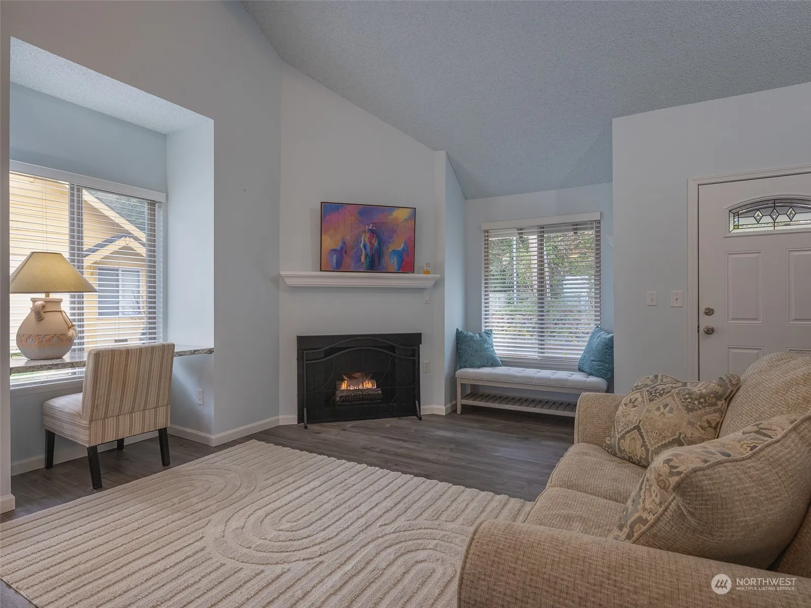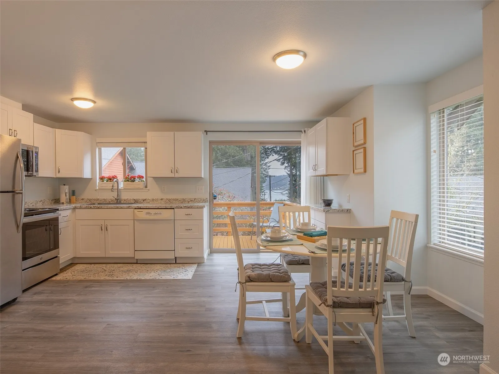 Remodeled in 2022. Updated kitchen w/new range and fridge. Updated bathroom, new flooring, windows, millwork, blinds and Cadet heaters. Living room w/gas fireplace, soaring ceilings and goas hot water tank. One assigned carport parking space plus open space next to the unit. Monthly dues of $250 covers water, garbage, lawn and building maintenance. All appliances included. Don’t miss the partial view of Henderson Bay from the kitchen and back deck. Furniture and wall pictures are available for sale.