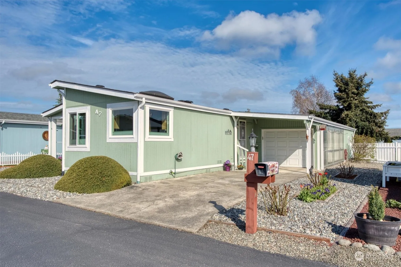 LOCATION, LOCATION! This roomy (nearly 1700 sq ft) but cozy home is in a great 55+ community and within walking distance to all the amenities incl. shopping, medical facilities and more! Features incl: Newer heat pump/furnace, newer refrigerator, newer carpet and flooring in primary bath, skylights and lots of windows to capture the natural light, beautiful mountain view, fresh interior paint, huge primary bedroom w/ensuite bath and large closet, roomy guest bedroom and a large den/office with built in desk, alley parking. Close to everything yet quiet and peaceful. Incl. use of some of the amenities at Lavender Meadows. You will love the beauty of the area!! Furnishings available.