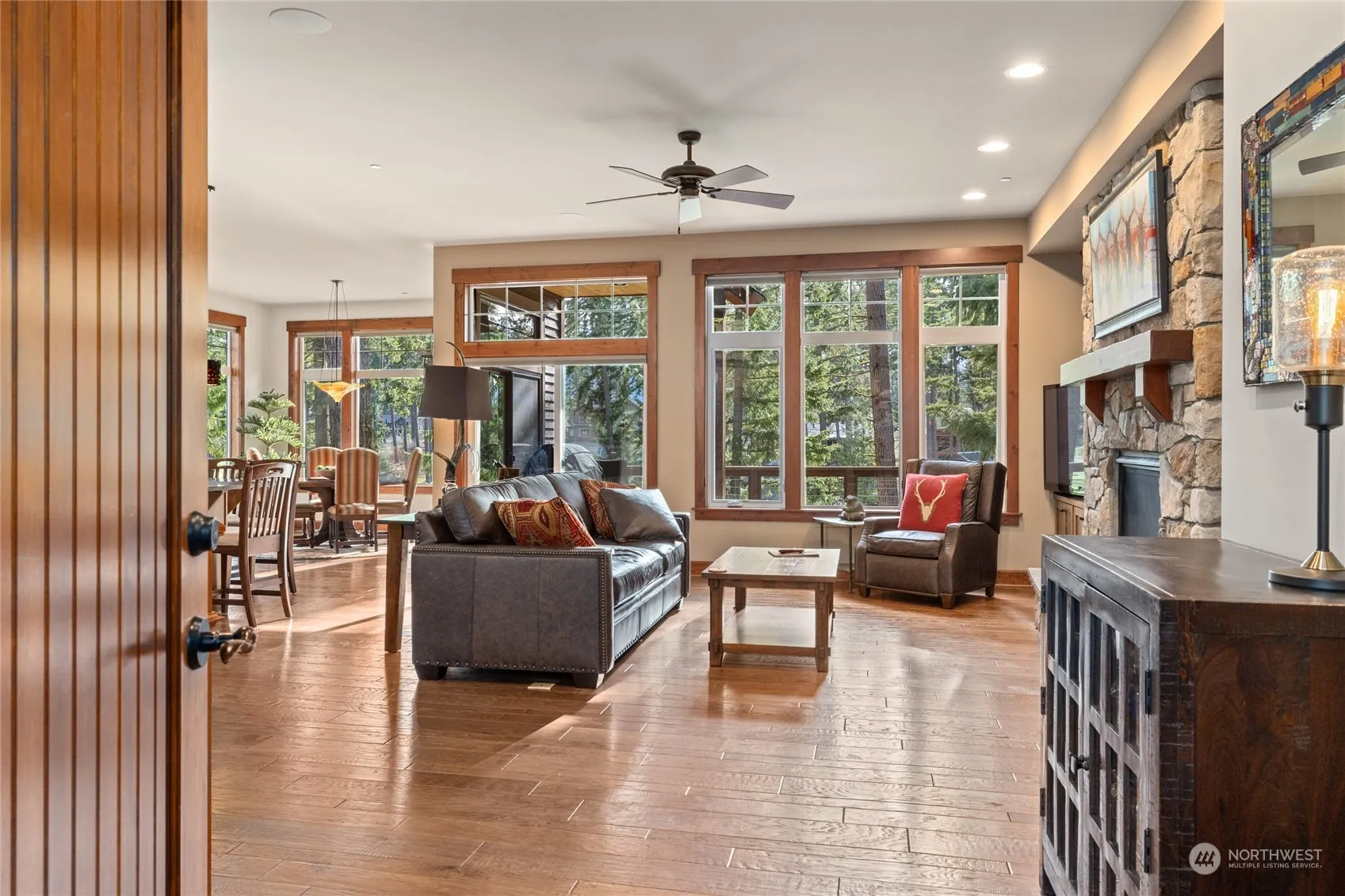 Privately nestled above Prospectors 16th fairway on quiet private oversized & special homesite, this impeccably maintained 2015 Burnstead-built home rests among the trees to blend in with the natural surroundings. Home features primary on main level w/ daylight basement opening to private outdoor oasis featuring elevated fire pit with a view! 3 BR / 2 bath downstairs (one is second ensuite) great TV & game bonus down, with a beautiful wine room! This home has never been rented and the quality and upkeep shine throughout whole home. Lovely elevated enclave of only 32 homes centrally located to heart of Suncadia yet is quiet setting at its best! Wildlife viewing abounds from this home – come see for yourself!
