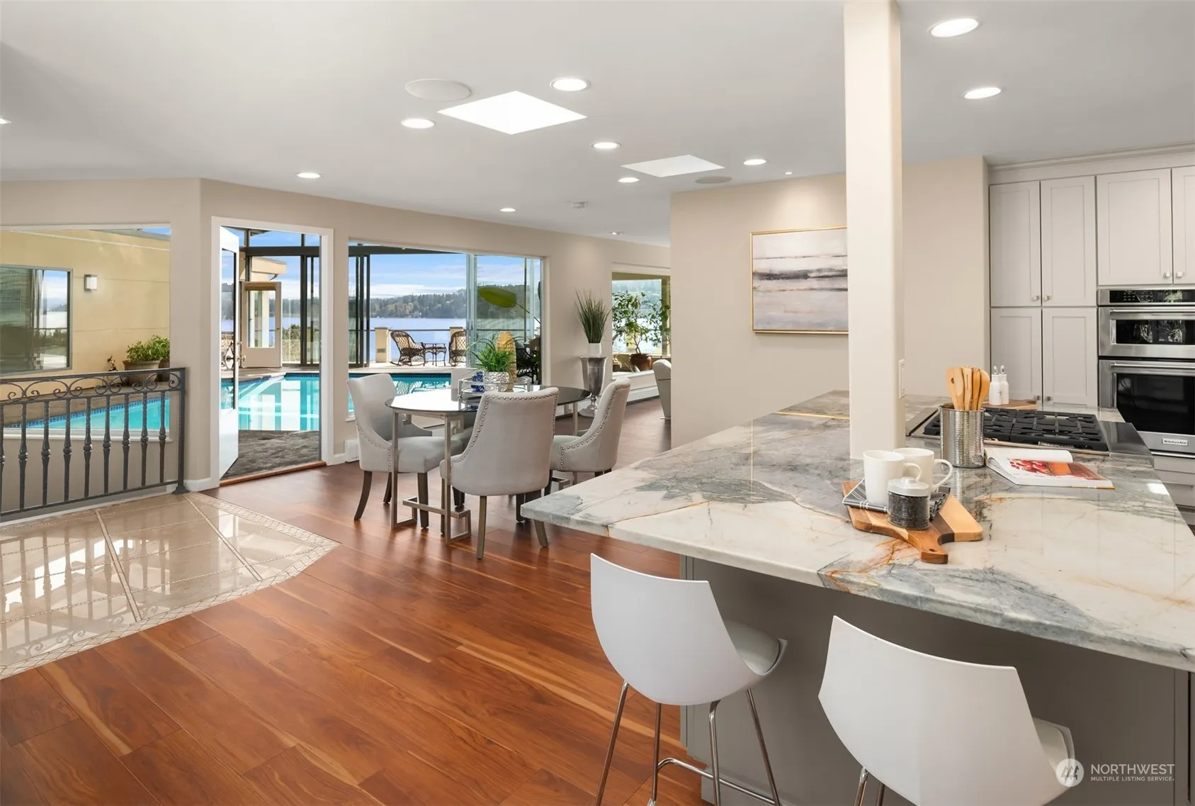 Live in luxury with this home’s unmatched lifestyle, blending entertainment & elegance. Imagine waking up to 180° views of the Cascades, Lk Washington, & Mt. Rainier. The indoor pool & rec room with wet bar offer endless relaxation & social opportunities, while the primary bathroom’s jetted tub & steam shower provide a private spa experience. Enjoy culinary creations in a kitchen equipped with a professional-grade stovetop and granite countertops. Outdoors, a wrap-around deck, Koi Pond, and gourmet garden await, with advanced security & smart home controls for peace of mind. This home is not just a residence but a statement of luxury & sophistication, perfectly positioned for those who seek a life of leisure & flair.