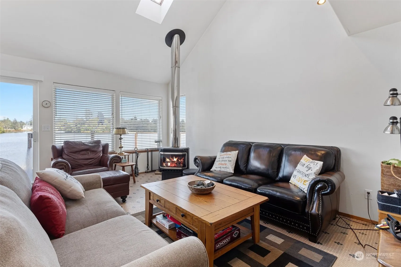 Amazing furnished lake front home on Duck lake. Enjoy this one of a kind Lake front home in Ocean Shores. Conveniently located on the large part of the lake and just across from the boat loading ramp There is an oversized Trex Deck that was completed in 2021. The inside of home has an open living room with vaulted ceilings and an entertainment kitchen with stainless steel appliances. The home is sold furnished and includes a new gas fireplace. Not included in the square footage is a detached oversized garage with a spacious loft. There is a roughed plumbed sewer and water for a potential ADU or mother in law apartment.