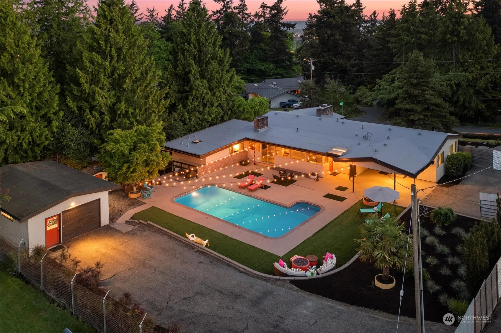 Fire up the BBQ and put on the sunscreen for a swanky summer pool parties at this midcentury modern gem! Inside, marvel at many original details with tasteful modern upgrades. Recently upgraded kitchen looks out to the pool area. New roof, new windows, new insulation and new pool pump among recent improvements. With 3 bedrooms and an office on the main level and an additional 2 bedrooms plus great room on the lower level, there’s flexibility for an ADU or guest suite with separate entrance. The marriage of inside and outside living is perfect for an active lifestyle. Don’t miss this beautifully preserved slice of architectural history. Features a 16,500 sqft lot, detached garage w/shop space & incredible privacy. Inspection upon request