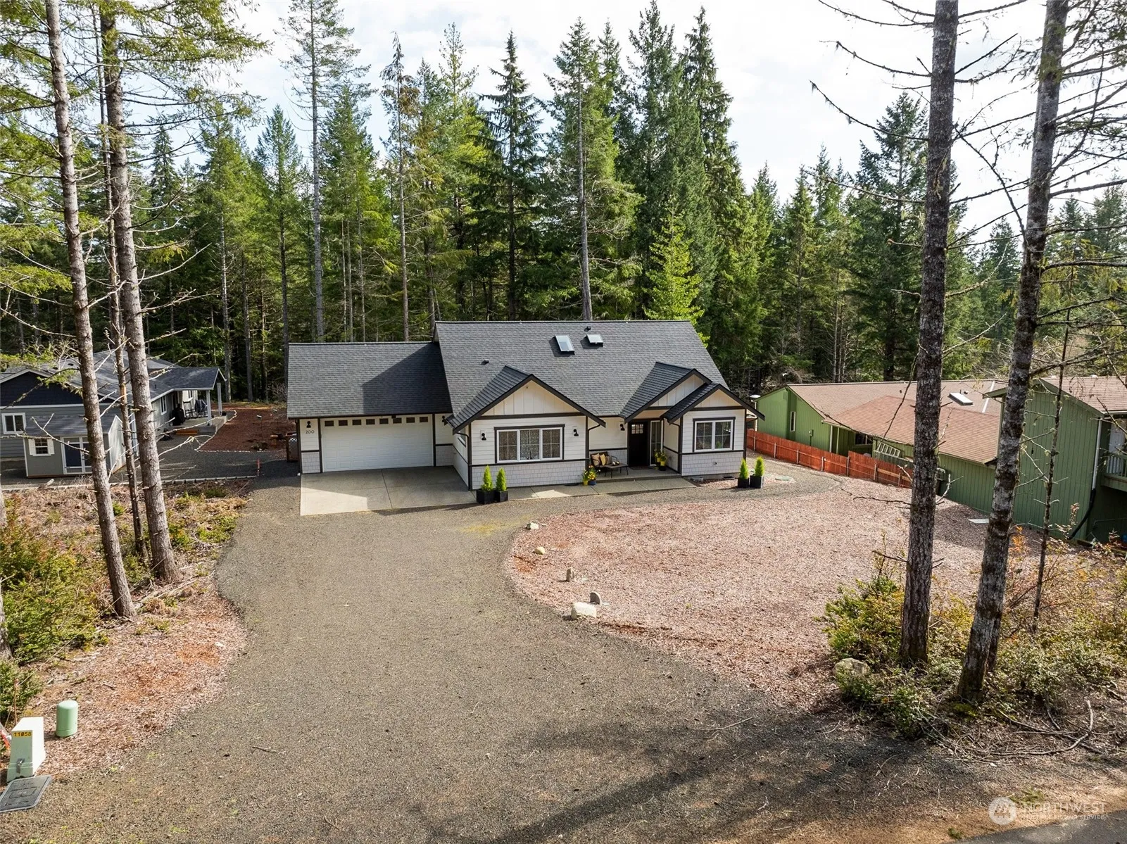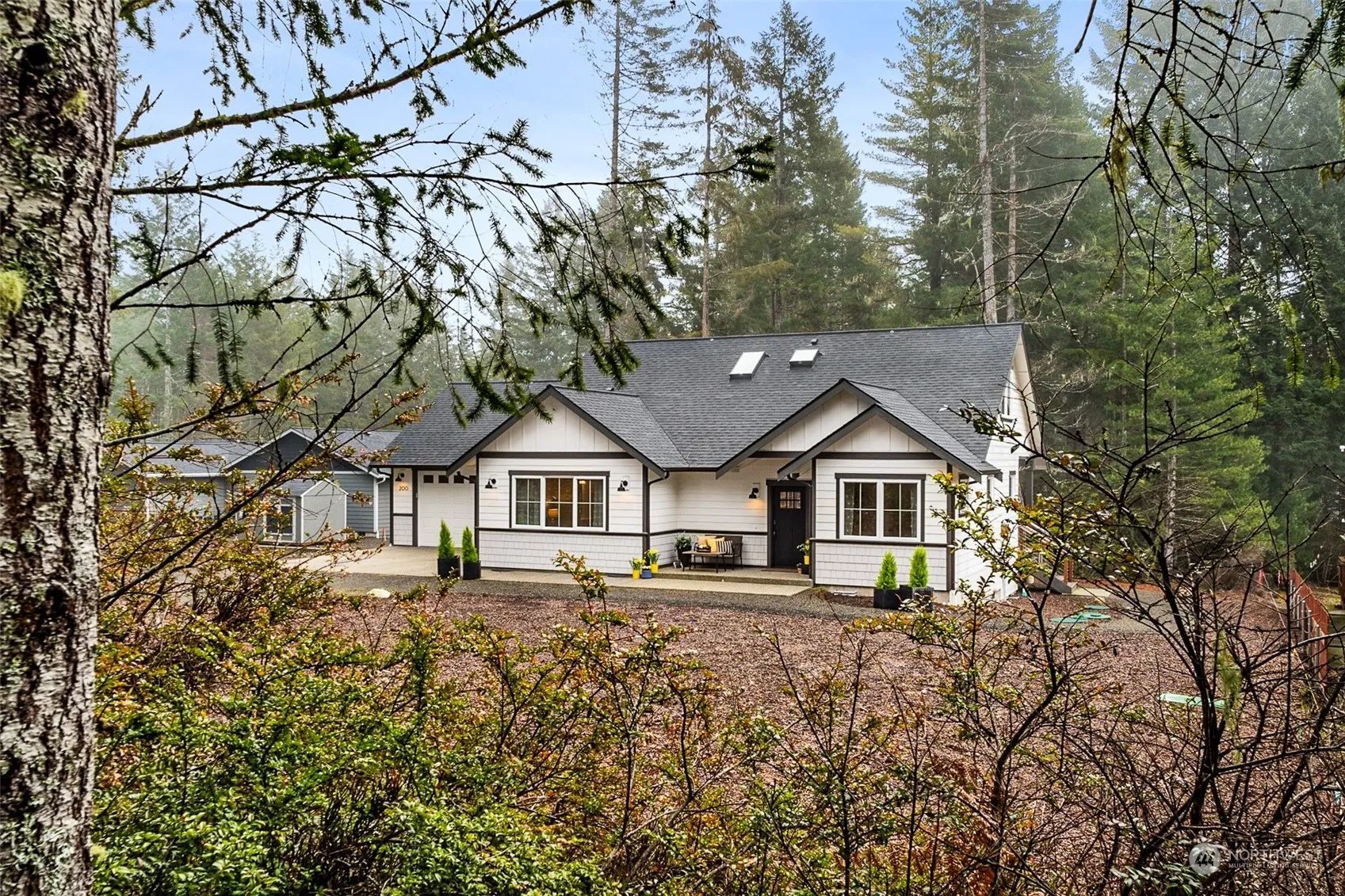 Better than new and move-in ready for Spring and Summer fun. This 2021 charming, current vacation home offers 1907 sf of mostly main floor, year-round, lovely living. Gorgeous on-trend features and interior upgrades couple with easy access to the golf course, club house, courts and trails. Handsome wood floors, quartz counters, and large view windows plus covered deck and much more accent the open, flexible and 3bdrm/den/2/5 bath Twanoh floor plan with primary suite, soaking tub, and walk-in closet. Two large upper bedrooms with substantial closet storage await your hobbies, guests or crew. Serene large light-filled lot is pre-groomed grounds ready for your landscaping favorites. HOA Golf benefits too! Hood Canal fun awaits!