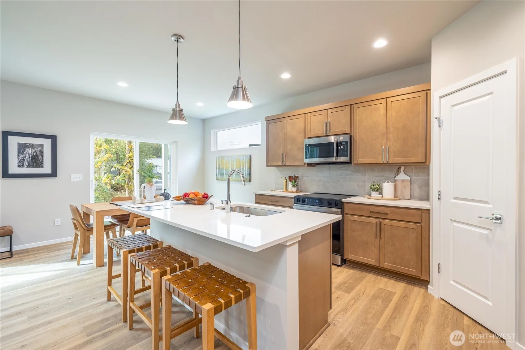 Last Chance in East Maple Ridge Division IV. Fantastic lot that back to natural areas. The 1710 Rambler has spacious Great Room featuring a large Island Kitchen with, stainless appliances, Quartz Counter tops, with Tile backsplash, walk-in pantry. Dining area leads to outdoor, private covered patio to enjoy the sunset over Drayton Harbor. Large Primary bedroom and bath with Quartz counters and walk-in shower and large closet. The two additional bedrooms are separate from Primary providing privacy. Covered front porch, whole home forced air with A/C. Close to DT Blaine and Canada for shopping, dining, golf, boating and all recreational activities. Home is complete. Special Financing Available Zero down rates starting at 3.75%