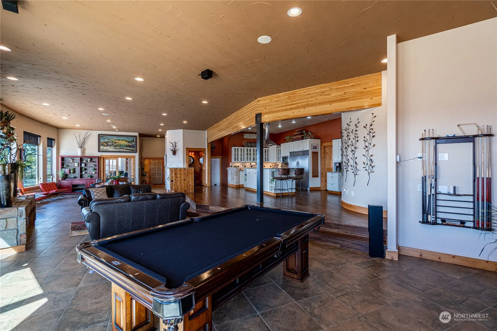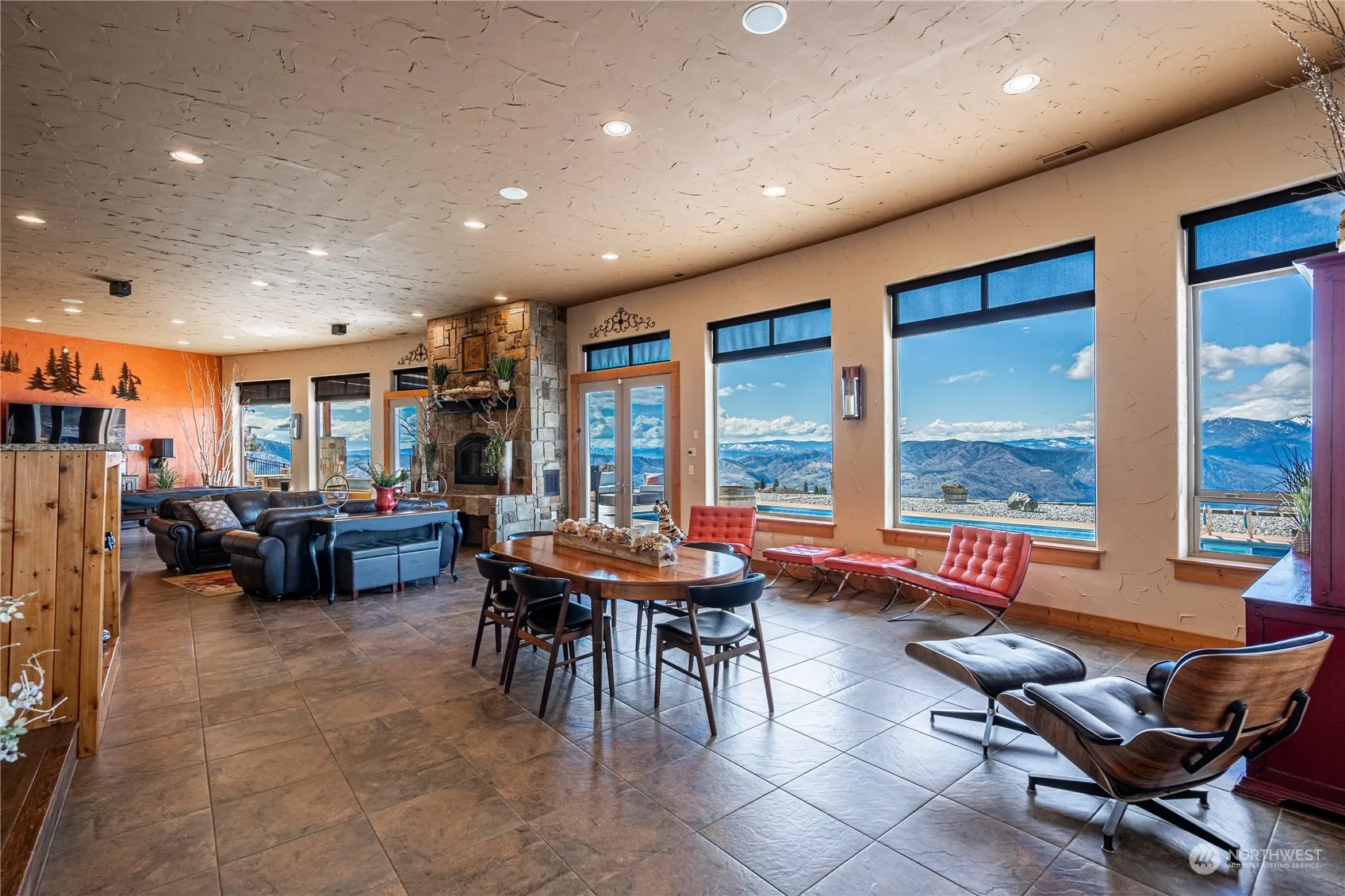 Views from the top of the world! Just five miles from downtown Chelan, this gorgeous custom home on 13.5 acres is an entertainer’s dream. Take in 180-degree views, envision pool parties on the patio & enjoy hosting all your friends while overlooking the entire valley & beyond. Featuring a beautiful open-concept main living space with French doors to the pool & patio, stone fireplace & 12′ ceilings throughout. 4 bedrooms, 4 bathrooms, huge bonus room plus an office. Primary & two guest bedrooms have French doors onto the patio, all enjoying the same views through massive windows. Radiant floors throughout the home and garage keep you cozy in all seasons. 13+ acres means unobstructed views and privacy. This home is not to be missed!
