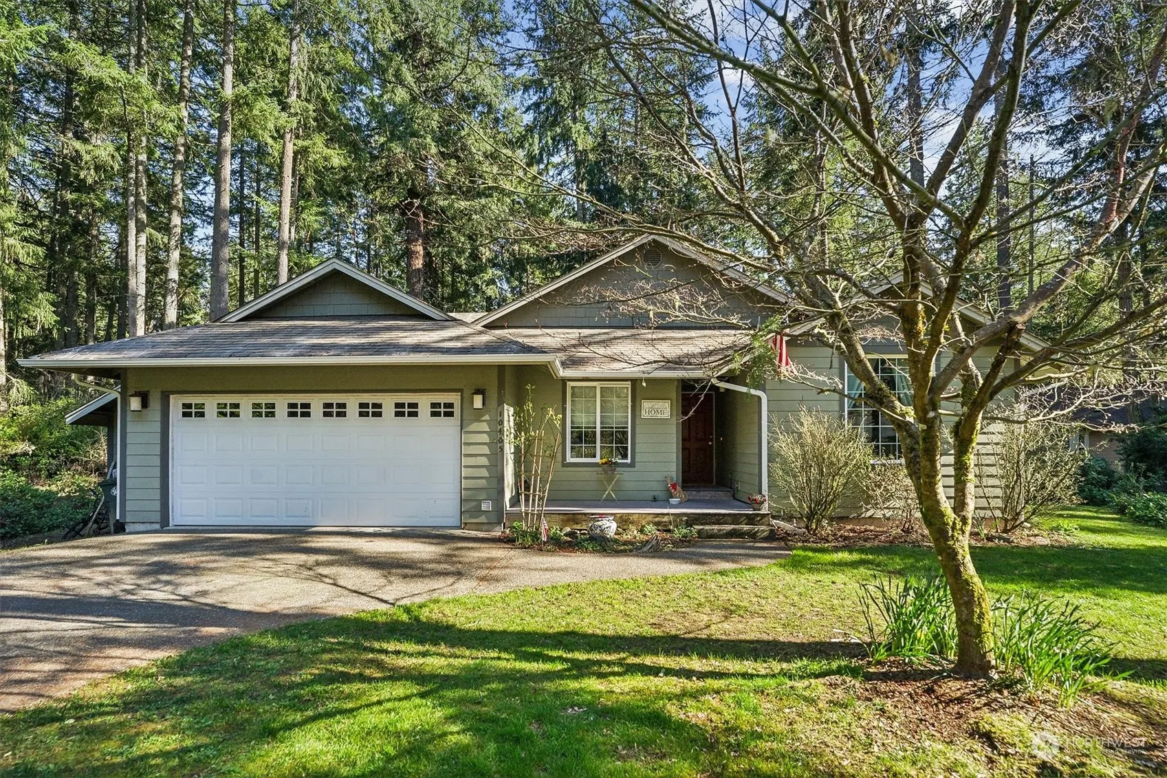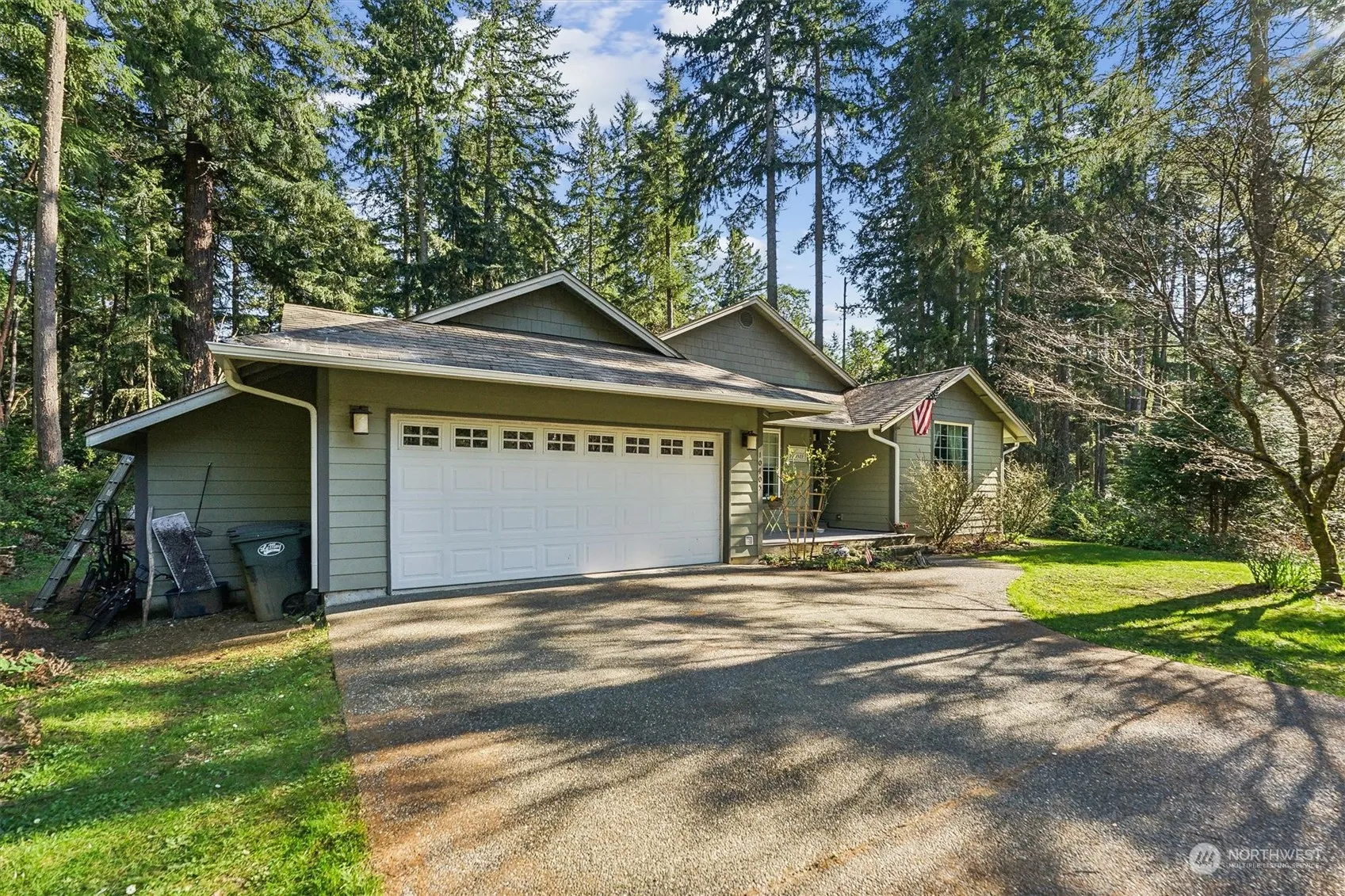 Welcome to Tranquility! This light & bright 3 bd 1.75 bth custom rambler is nestled in a quiet cul de sac surrounded by trees & natural beauty. Step inside to comfort w/a functional floorplan that is sure to delight! Vaulted ceilings throughout give an air of spaciousness, while open concept kitchen/eating space w/ generous eat-in island/bar are the heart of the home. Entertain guests in your spacious living room & when the weather warms extend your gatherings on the newly expanded deck & fire pit below. Enjoy features such as ensuite off primary, dedicated utility space, central vac, attached shed & 2-car garage w/insulated door. Close to all Riviera HOA amenities; lakes, golf, tennis, trails, & more! A quick 20 min ferry & a world away!